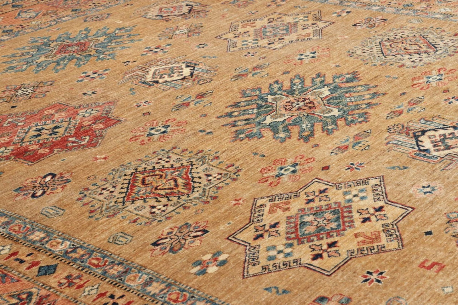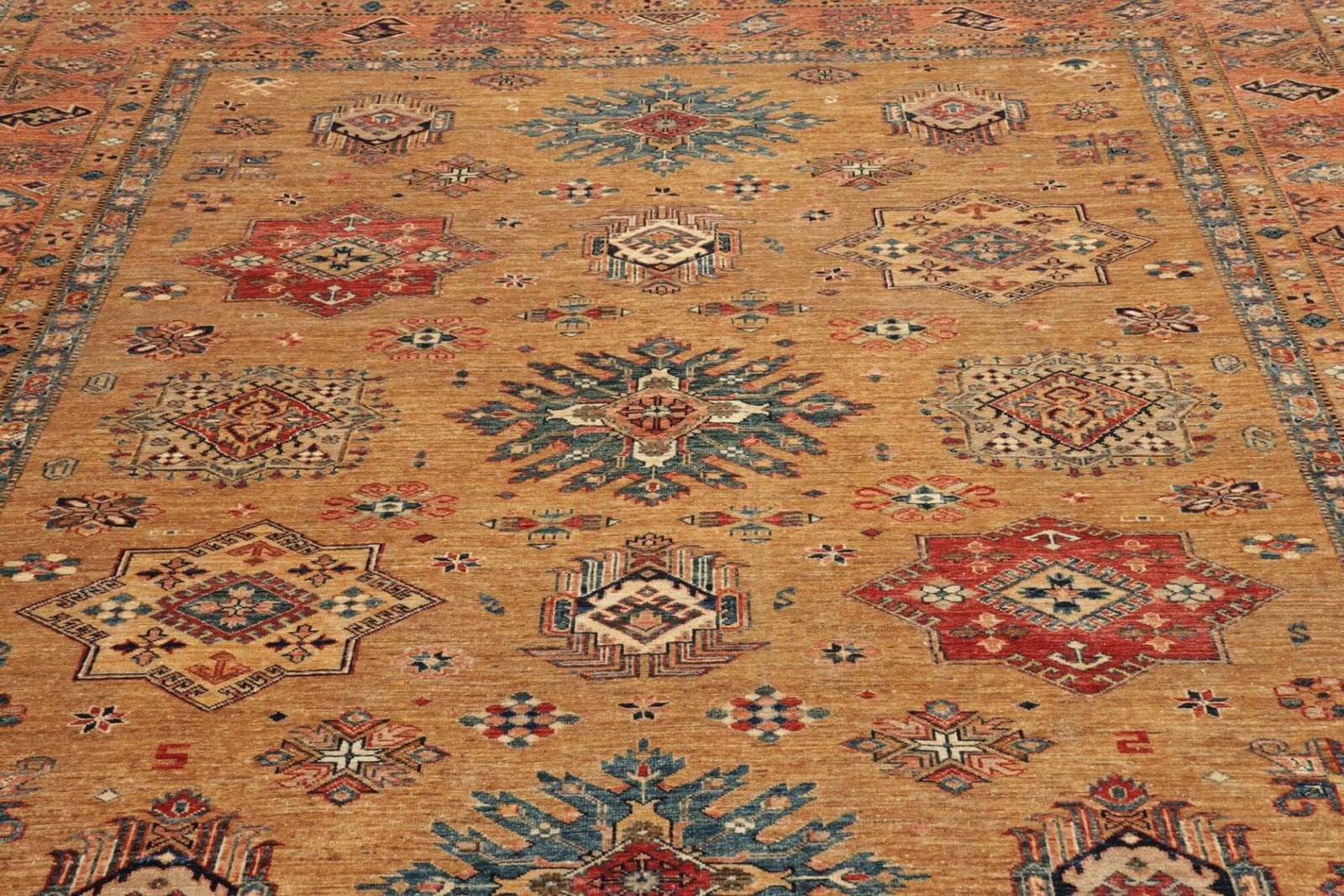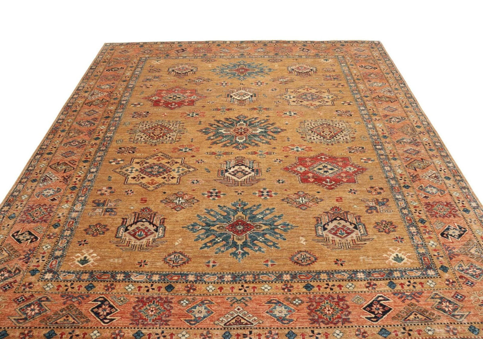 5362$Ursprünglicher Preis war: 5362$4546$Aktueller Preis ist: 4546$Kazak Teppich | Knotendichte: 200.000 Knoten/m² | Material: 100% Schurwolle | Größe: 254 x 296 cm | Höhe: 7-10 mm | Kette: 100% Baumwolle | Herkunft: Pakistan | Handgeknüpfte Qualität | Geometrische Muster und Figuren