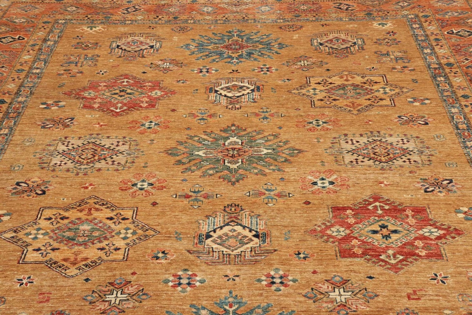 5652$Ursprünglicher Preis war: 5652$5048$Aktueller Preis ist: 5048$Kazak Teppich | Knotendichte: ca. 200.000 Knoten/m² | Material: 100% Schurwolle (Flor), 100% Baumwolle (Kette) | Größe: 255 x 309 cm | Herkunft: Pakistan | Handgeknüpfte Qualität | Geometrische Muster und Figuren | Höhe: ca. 7-10 mm | Rarität und begehrtes Sammlerstück