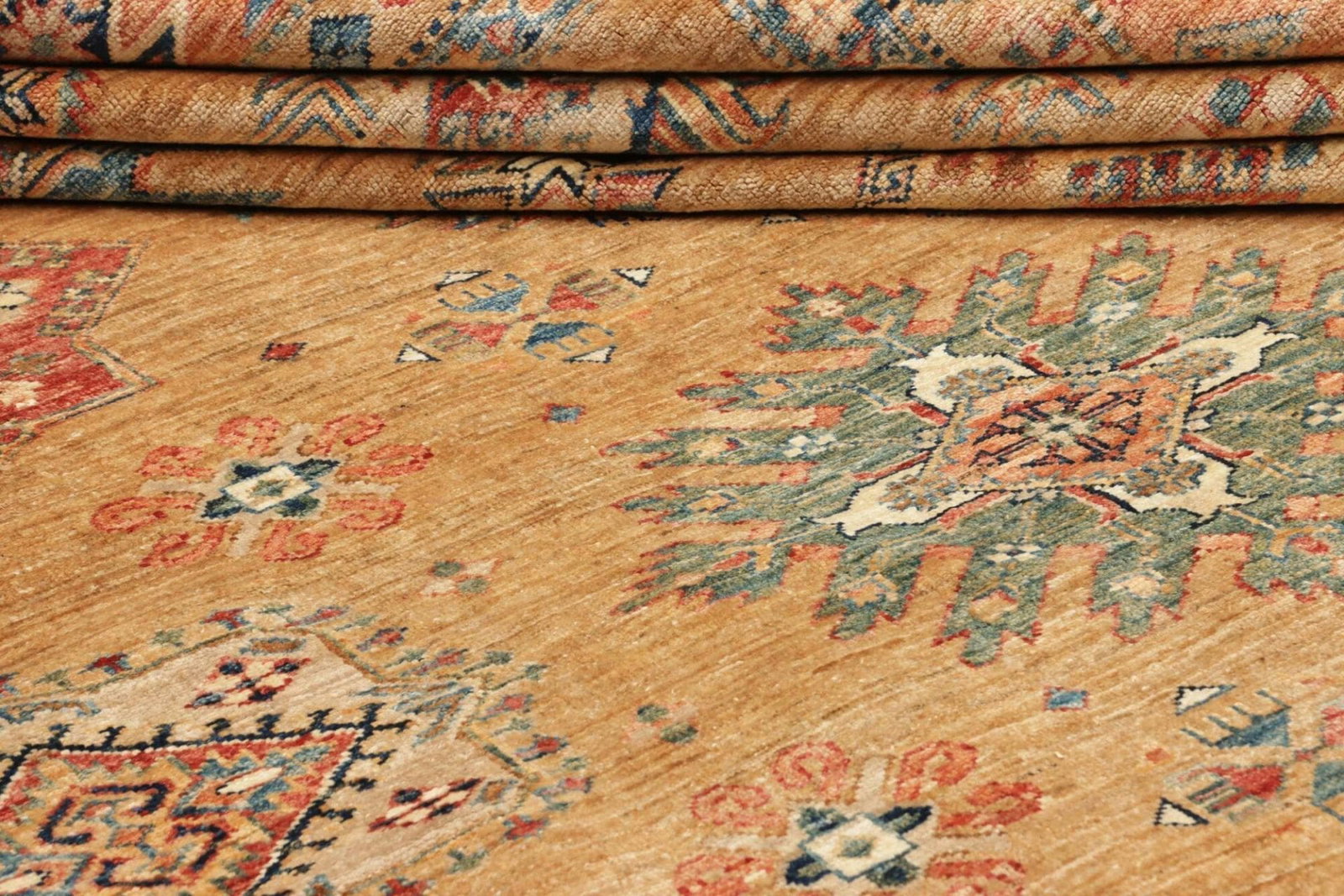 Handgeknüpfte Teppiche wie der Kazak Teppich zeichnen sich durch ihre Langlebigkeit und Strapazierfähigkeit aus. Sie behalten ihre Farben und Strukturen über die Jahre hinweg und sind oft einzigartig, da sie von Hand gefertigt werden.