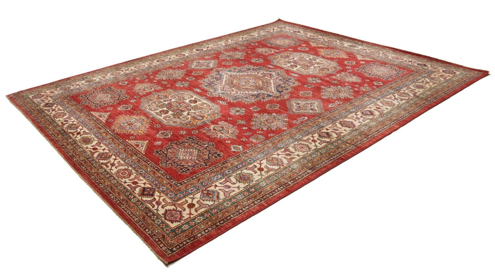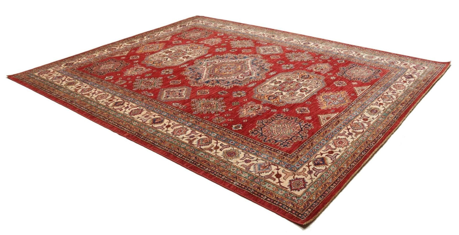 Der Kazak Teppich ist ein wahres Meisterwerk der Handwerkskunst und beeindruckt sowohl durch seine Ästhetik als auch durch die handwerkliche Tradition, die hinter ihm steht. Dieser handgeknüpfte Teppich verbindet zeitlose Schönheit mit funktioneller Beständigkeit und eignet sich hervorragend, um jedem Raum eine warme und einladende Atmosphäre zu verleihen. Seine geometrischen Muster zeugen von einer tief verwurzelten kulturellen Bedeutung und machen ihn zu einem außergewöhnlichen Dekorationsstück.