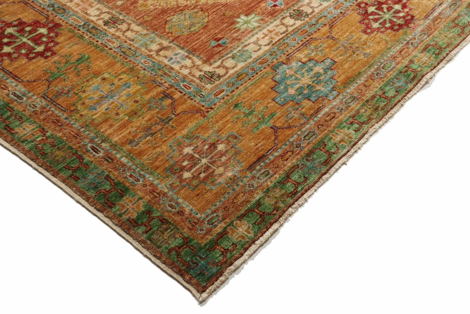 Der Kazak Teppich wird aus hochwertigen Materialien hergestellt, die ihm nicht nur eine wunderschöne Optik, sondern auch außergewöhnliche Langlebigkeit verleihen. Die Fasern sind in der Regel aus reiner Wolle gefertigt, die für ihre Weichheit und Strapazierfähigkeit bekannt ist. Diese natürliche Stofflichkeit sorgt dafür, dass der Teppich nicht nur ästhetisch ansprechend ist, sondern auch eine warme und einladende Atmosphäre in jedem Raum schafft. Die Technik des Handknüpfens garantiert eine hohe Knotendichte, was sich in der Detailgenauigkeit und der Langlebigkeit des Produkts widerspiegelt.