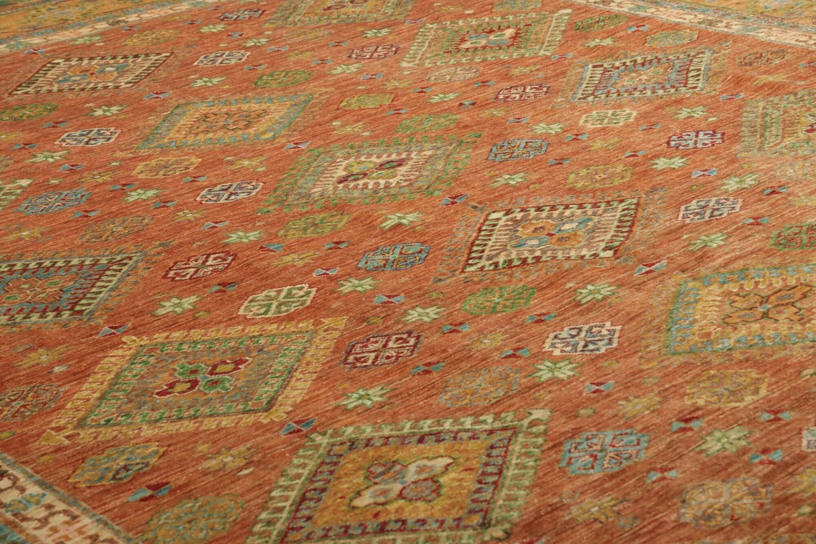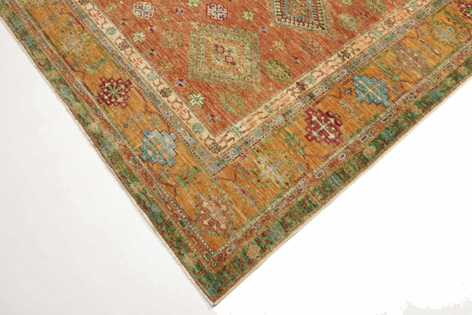 Einer der herausragenden Aspekte des Kazak Teppichs ist seine Vielseitigkeit. Er passt sowohl zu traditionellen als auch zu modernen Wohnkonzepten und kann als zentrales Element in einem Raum oder als dekorativer Akzent eingesetzt werden. Dank der robusten Materialien und der hohen Knotendichte ist er zudem pflegeleicht und langlebig, wodurch er sich ideal für stark frequentierte Bereiche eignet.