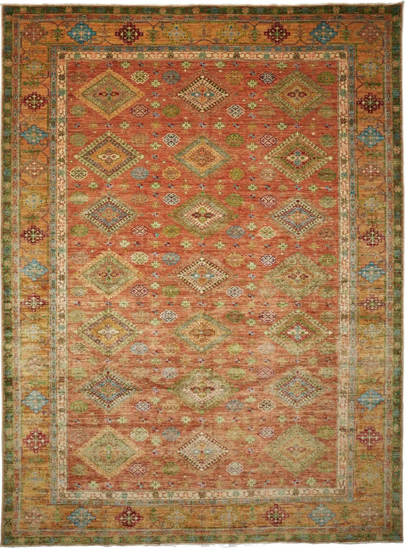 Kazak Teppich 265 x 356cm, geometrische Muster, handgeknüpft