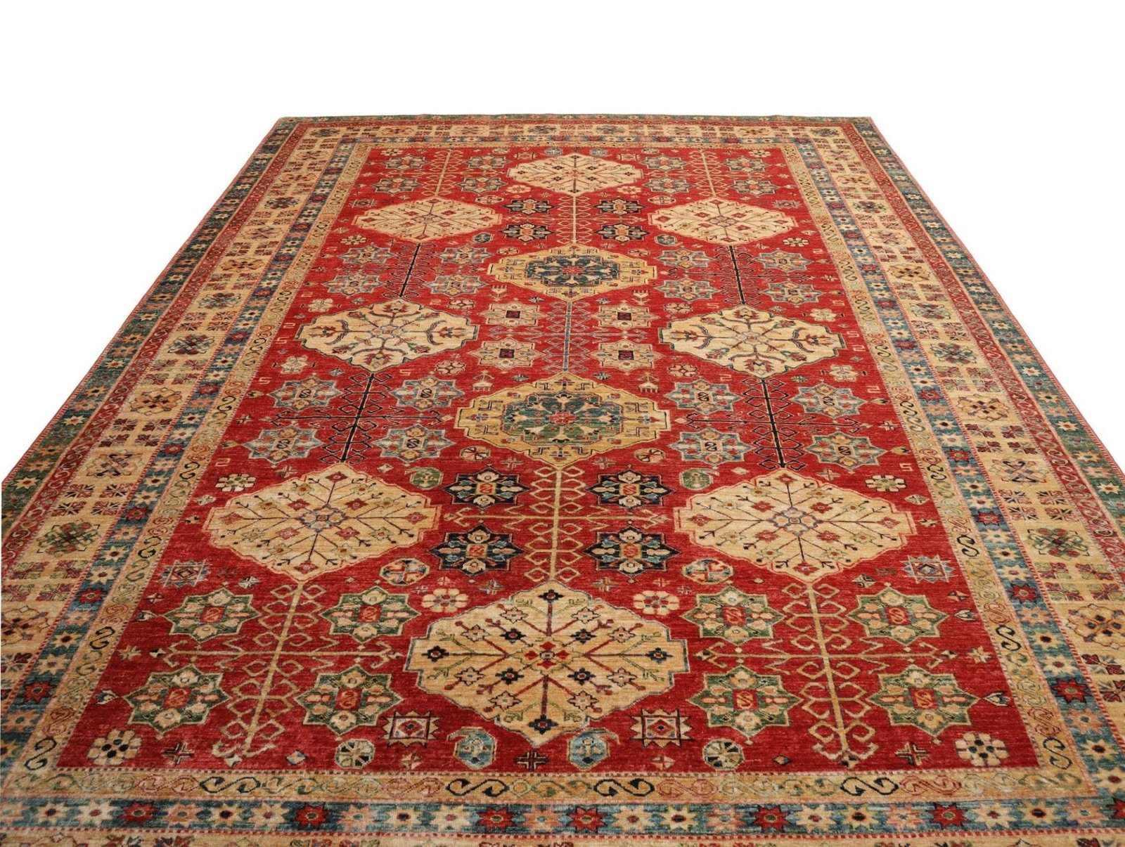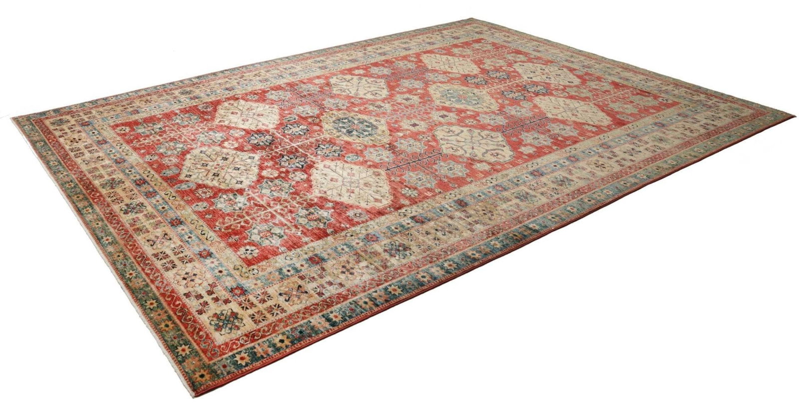 Kazak Teppich 281 x 374 cm, geometrisches Muster, handgeknüpft