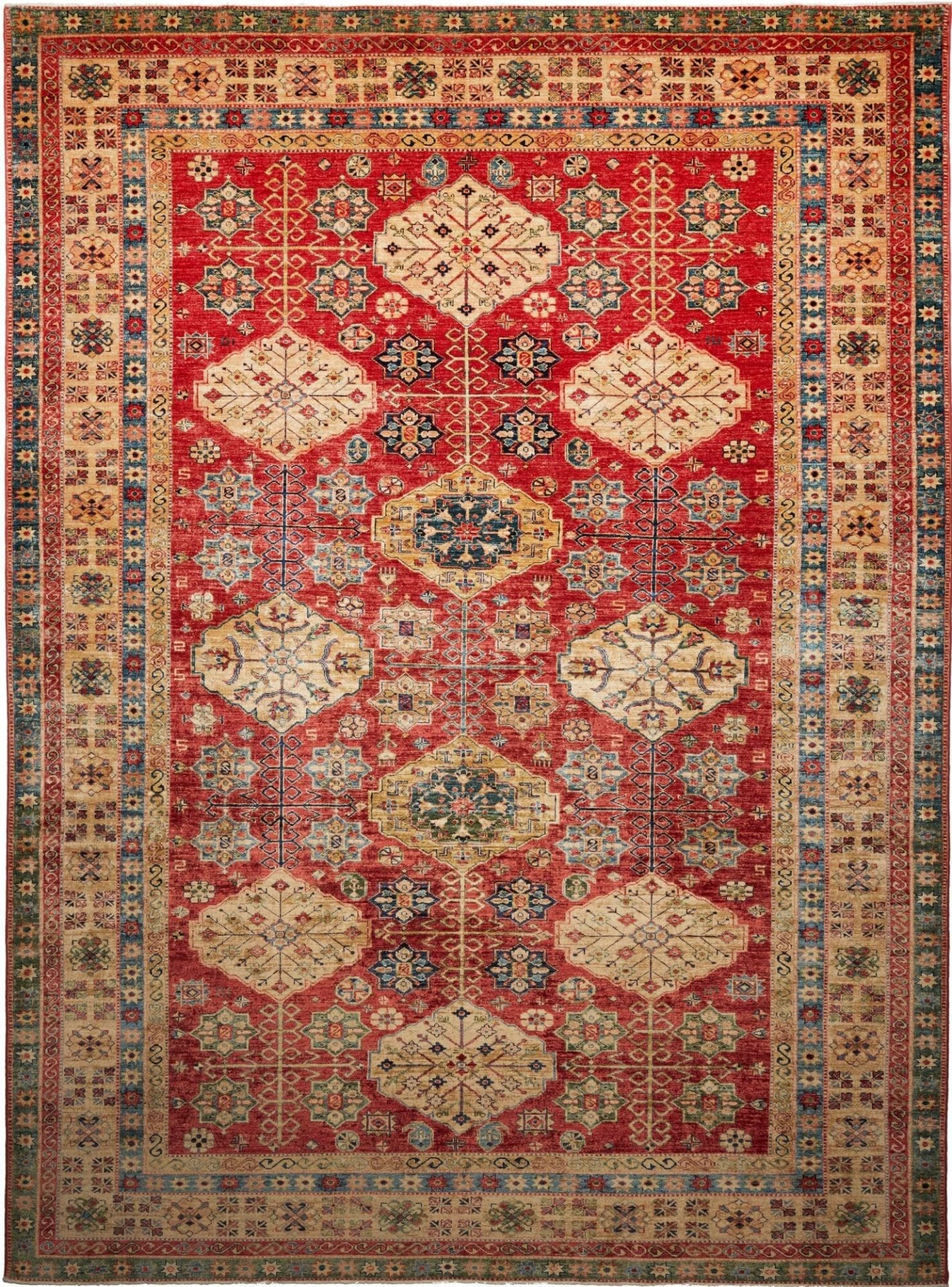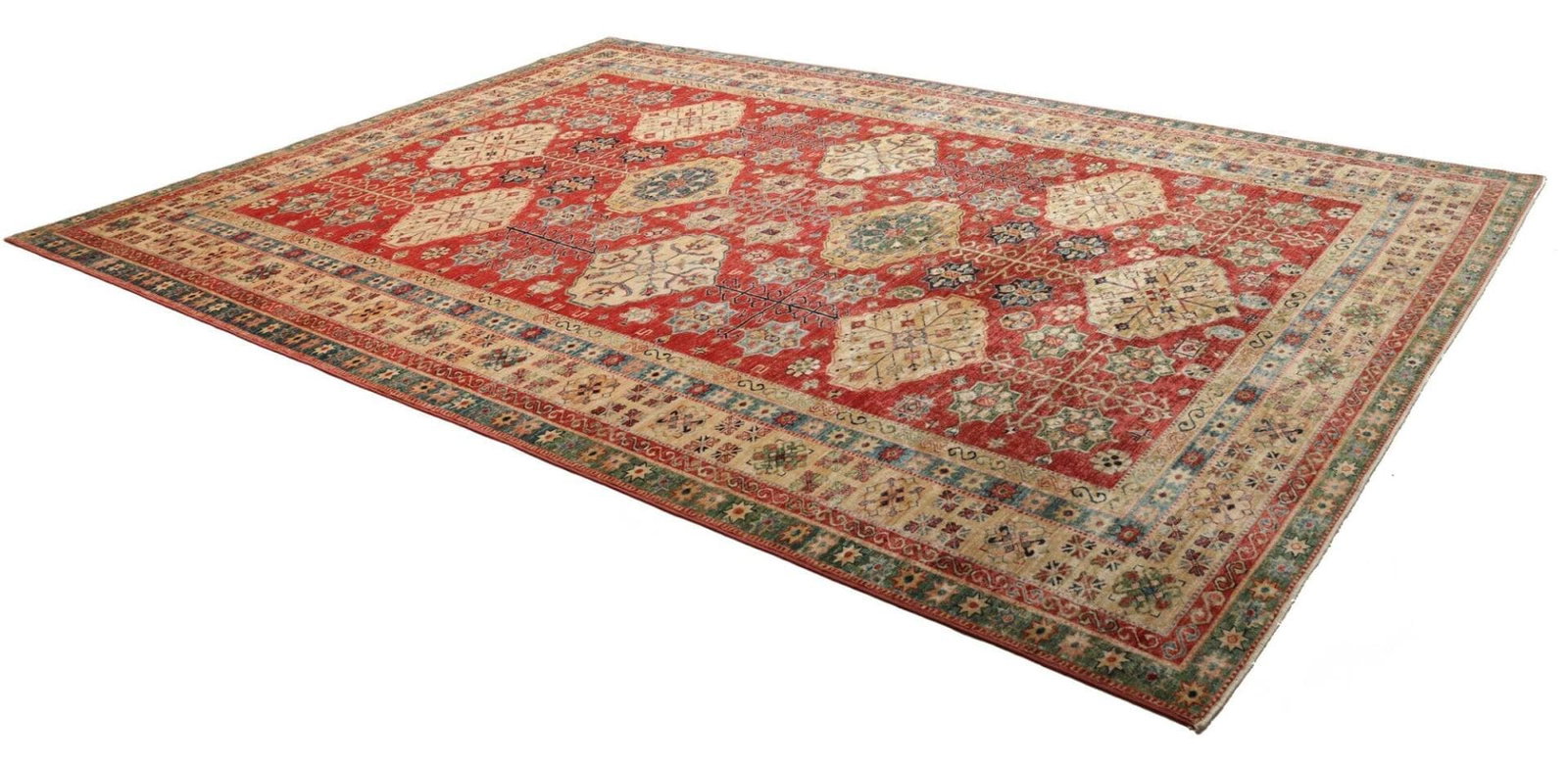 7531$Ursprünglicher Preis war: 7531$6730$Aktueller Preis ist: 6730$Kazak Teppich | Knotendichte: ca. 200.000 Knoten/m² | Material: 100% Schurwolle im Flor, 100% Baumwolle in der Kette | Größe: 281 x 374 cm | Herkunft: Pakistan | Zustand: Handgeknüpfte Qualität mit geometrischen Mustern | Provenienz: Kazak