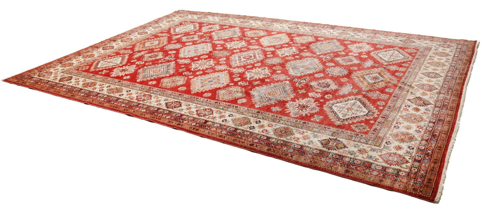 Kazak Teppich | Knotendichte: ca. 200.000 Knoten/m² | Material: 100% Schurwolle | Größe: 300 x 410 cm | Zustand: Sehr gut | Herkunft: Pakistan | Verarbeitung: Handgeknüpft | Geometrisches Muster und flache Knüpfung