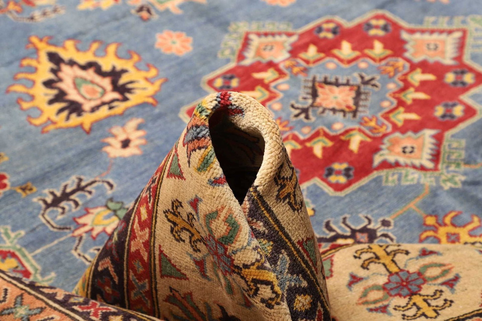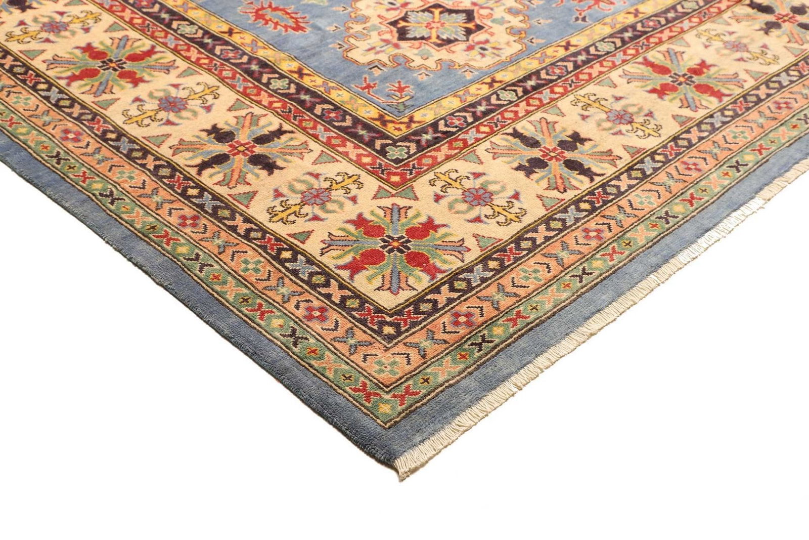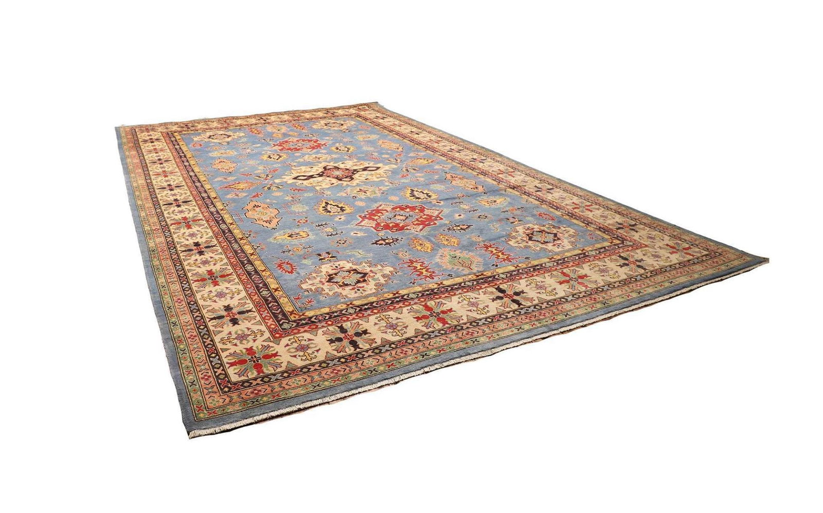 Der Kazak Teppich besteht aus hochwertigen Wolle, die sorgfältig ausgewählt wird, um ein angenehmes Gefühl und eine hohe Strapazierfähigkeit zu gewährleisten. Die Wolle ist bekannt für ihre Robustheit und sorgt dafür, dass der Teppich auch bei starker Beanspruchung seine Schönheit behält. Die handgeknüpfte Technik, die für diesen Teppich verwendet wird, vereint Tradition mit modernem Design und sorgt für eine dichte Knotendichte, die die Langlebigkeit und Strapazierfähigkeit des Teppichs unterstreicht.