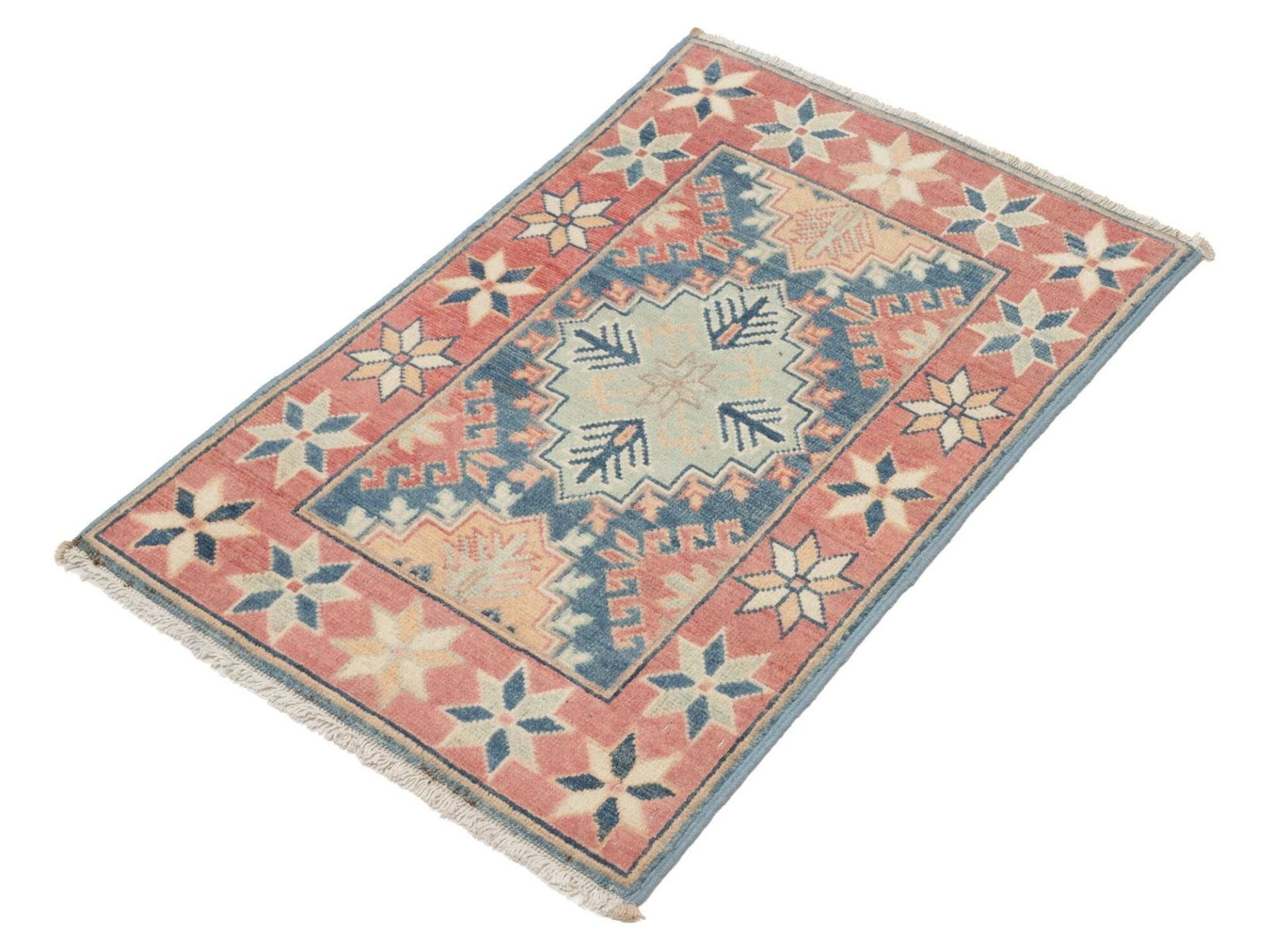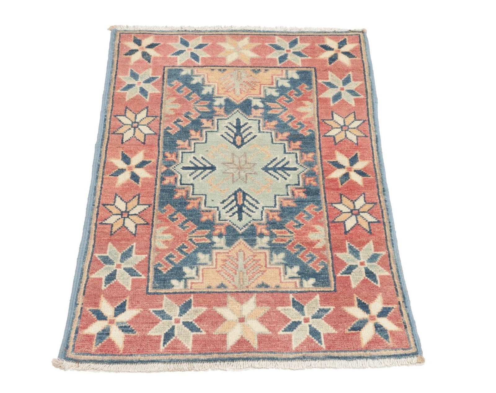 181$Ursprünglicher Preis war: 181$163$Aktueller Preis ist: 163$Kazak Teppich | Knotendichte: ca. 100.000 Knoten/m² | Material: 100% Schurwolle | Größe: 61 x 86 cm | Herkunft: Pakistan | Zustand: Handgeknüpfte Qualität | Muster: Geometrische Figuren und Muster