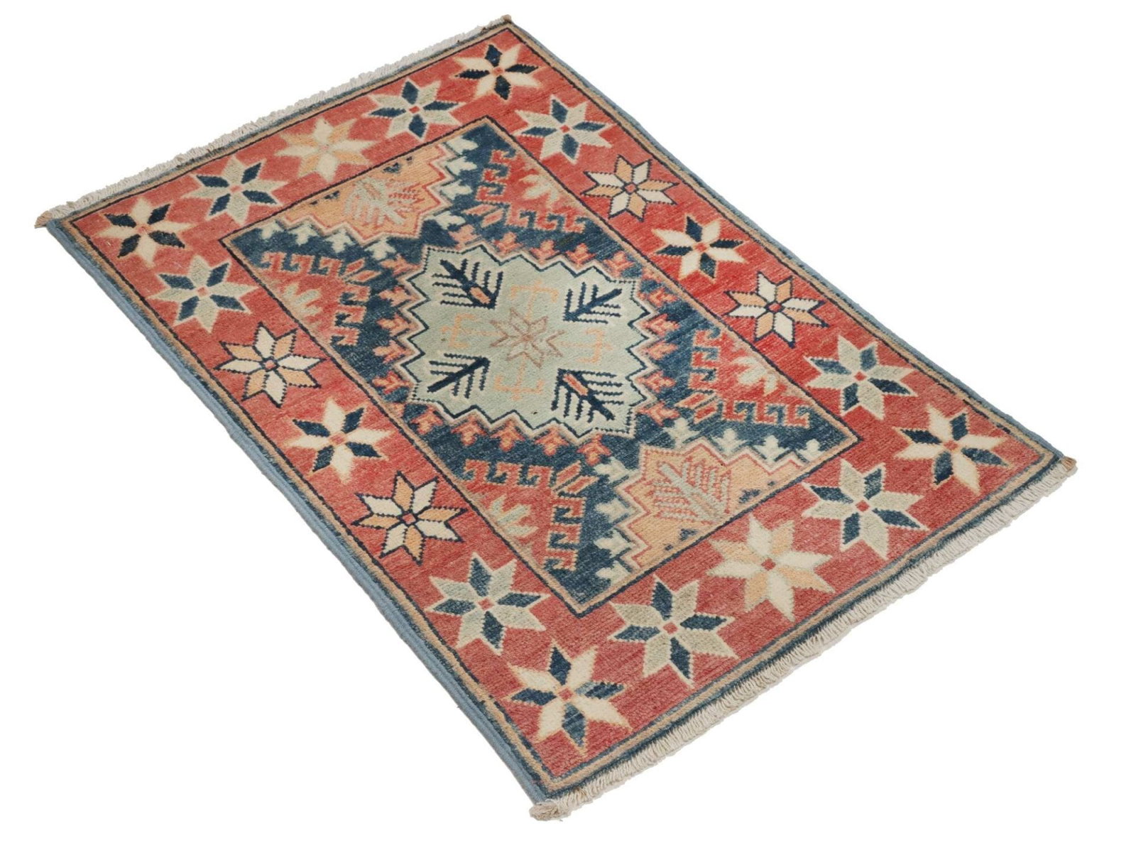 Kazak Teppich 61 x 86 cm, geometrisches Muster, handgeknüpft