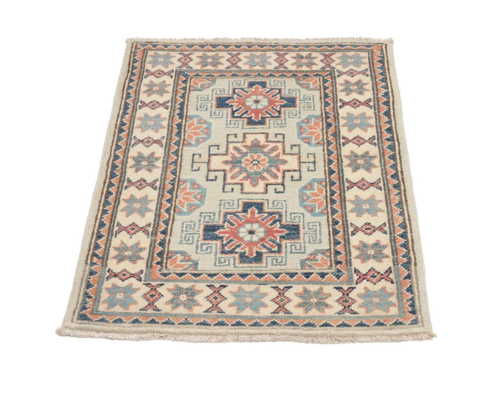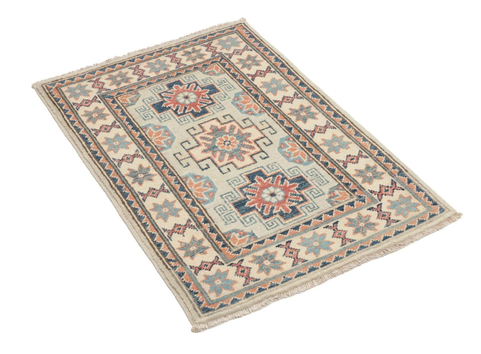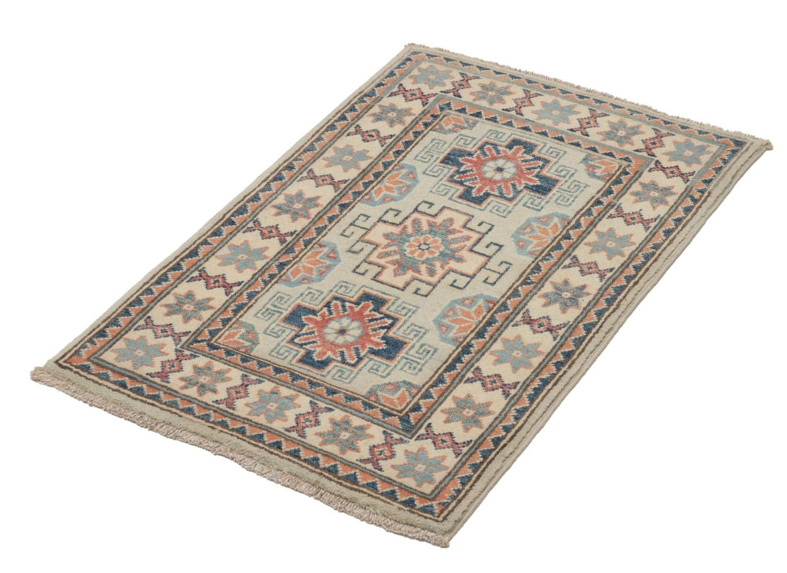 Kazak Teppich 63 x 88 cm, geometrisches Muster, handgeknüpft