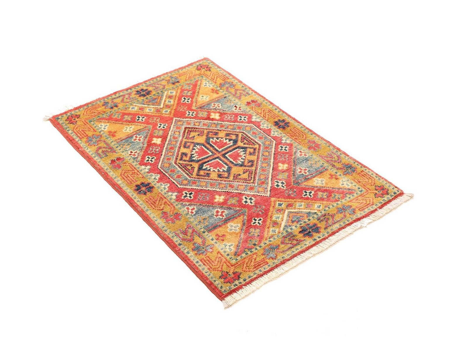 202$Ursprünglicher Preis war: 202$128$Aktueller Preis ist: 128$Kazak Teppich | Knotendichte: ca. 100.000 Knoten/m² | Material: 100% Schurwolle | Größe: 63×88 cm | Herkunft: Pakistan | Zustand: Handgeknüpft | Geometrische Muster und Figuren