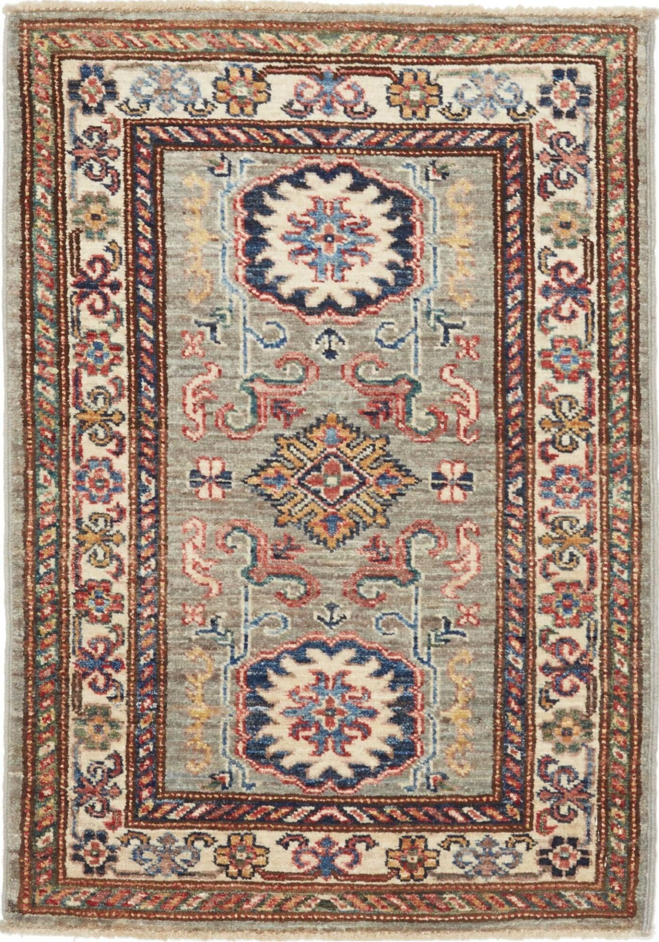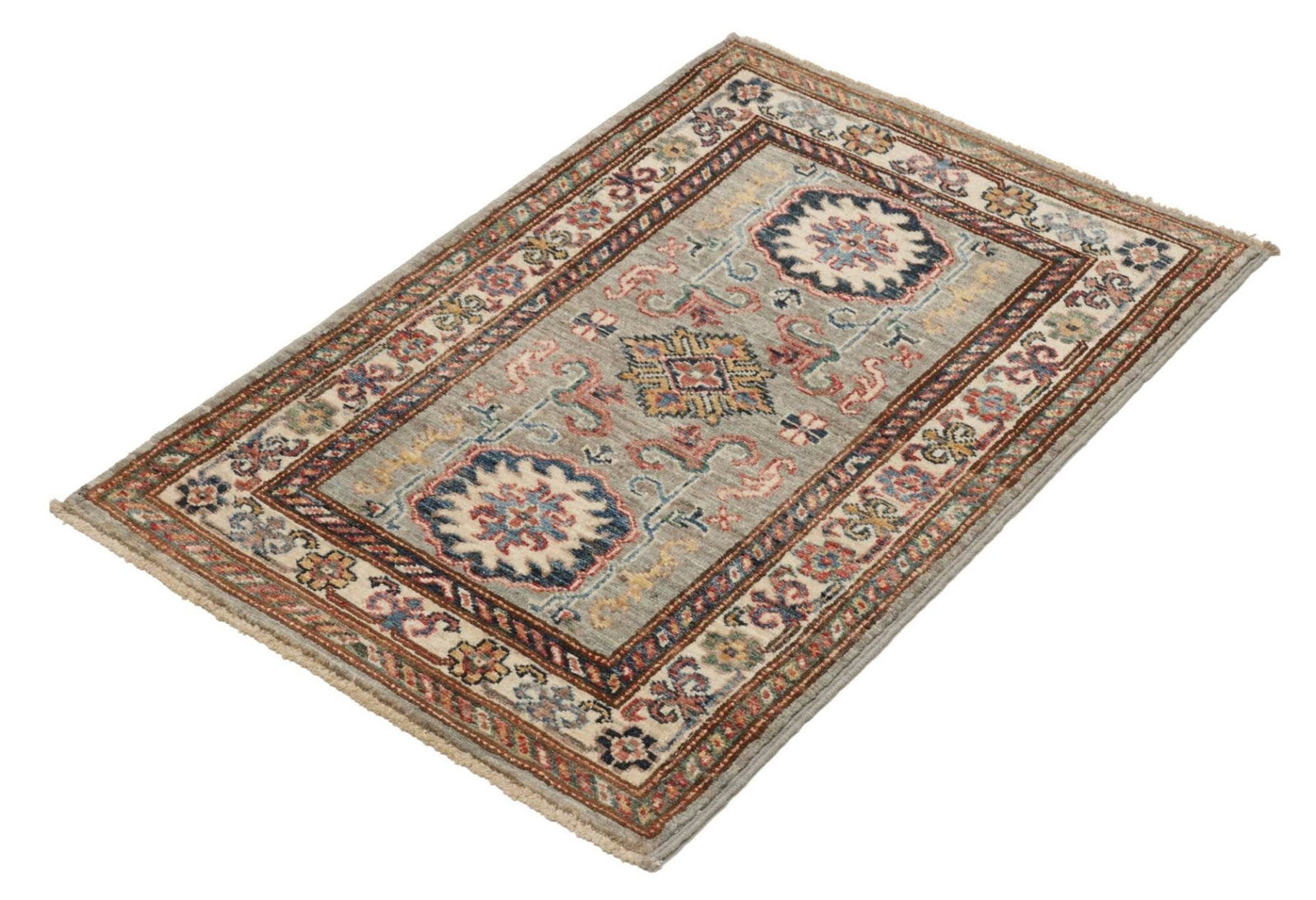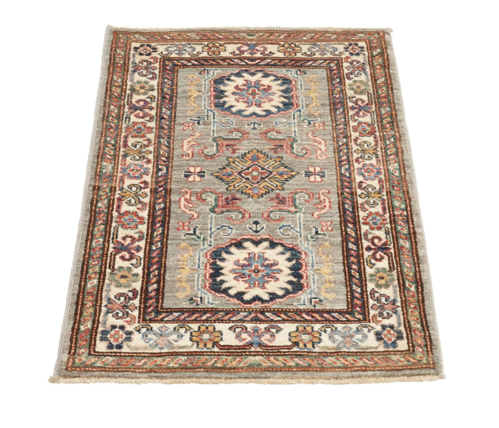 Kazak Teppich 64 x 88cm, geometrisches Muster, handgeknüpft