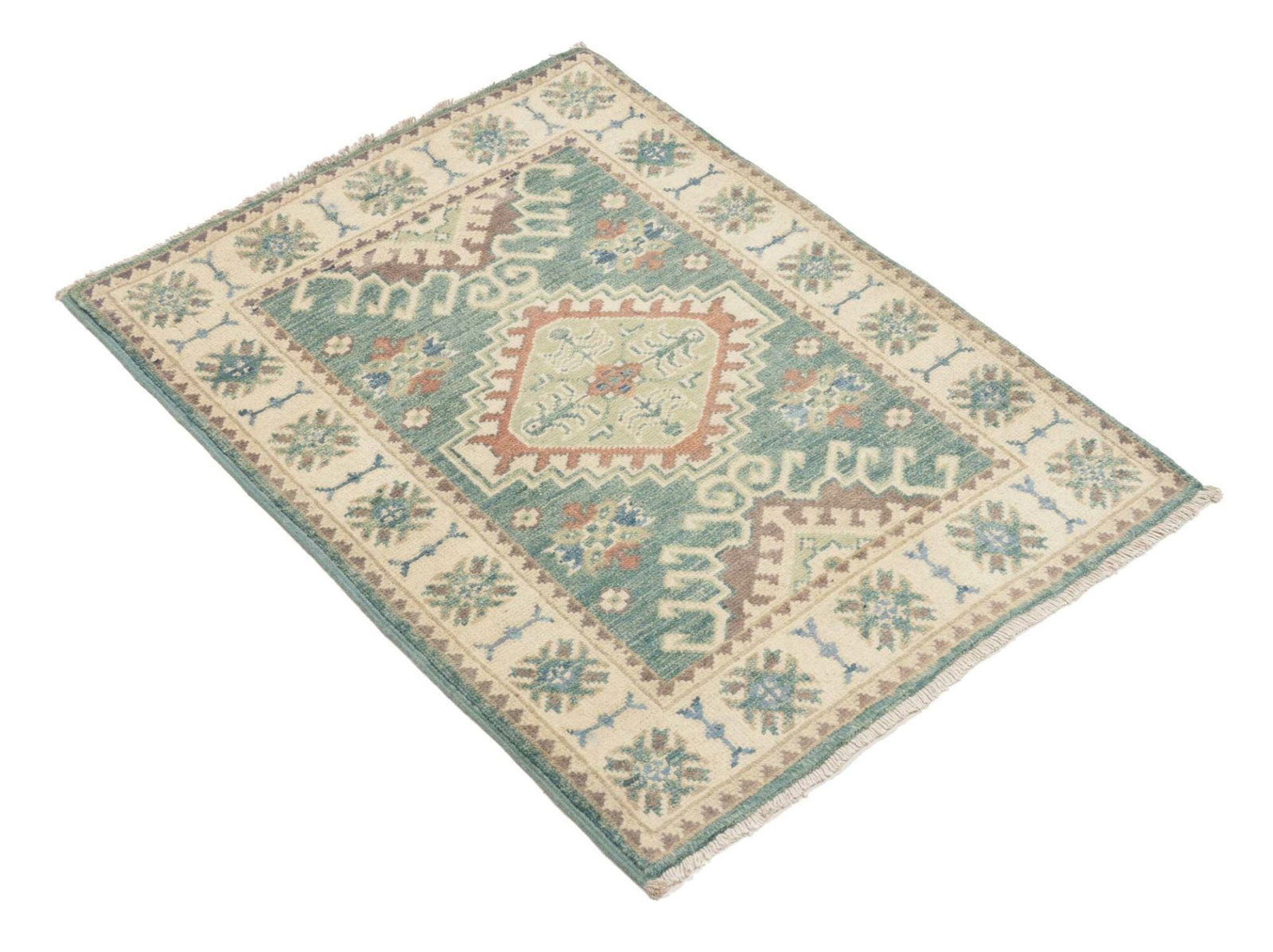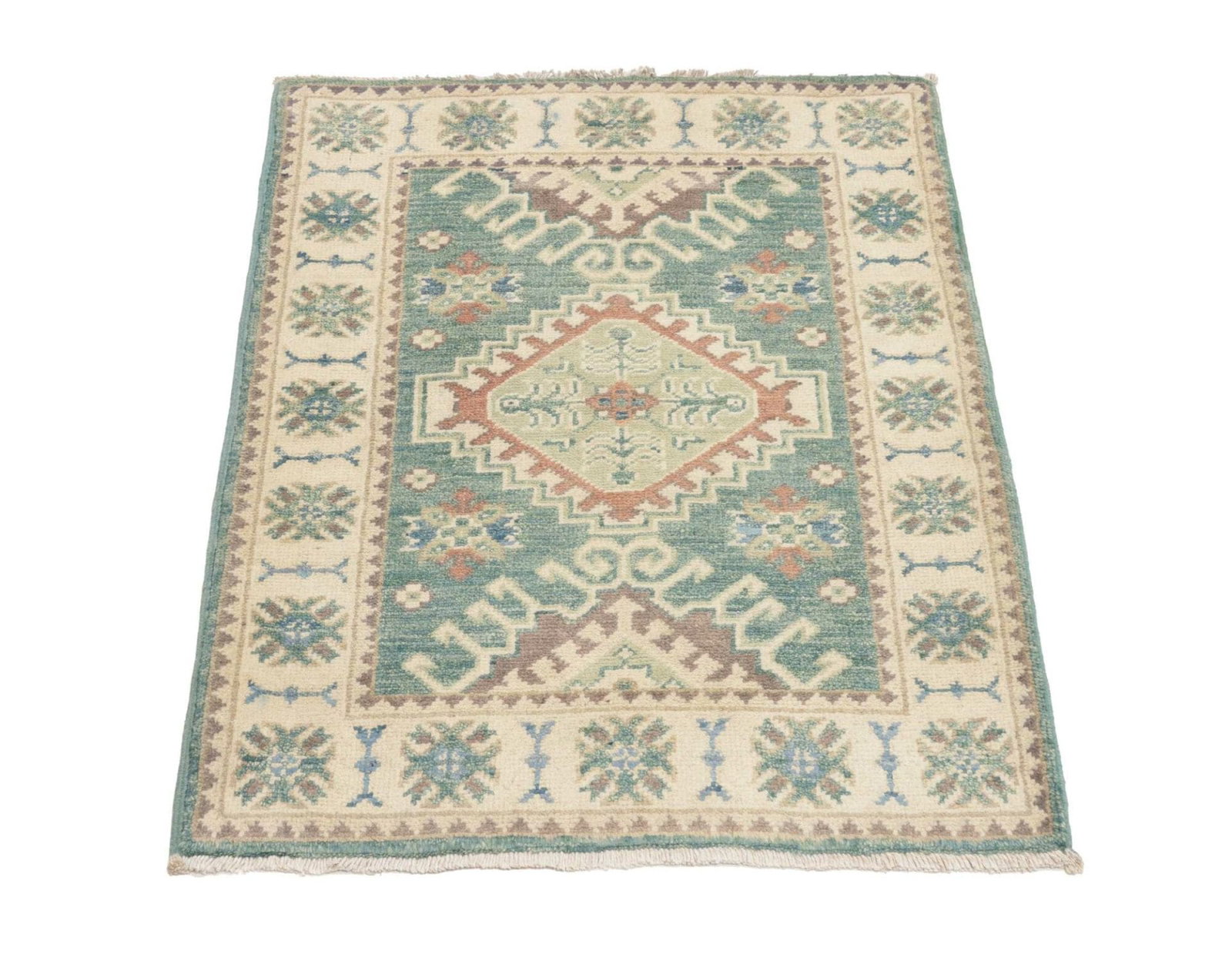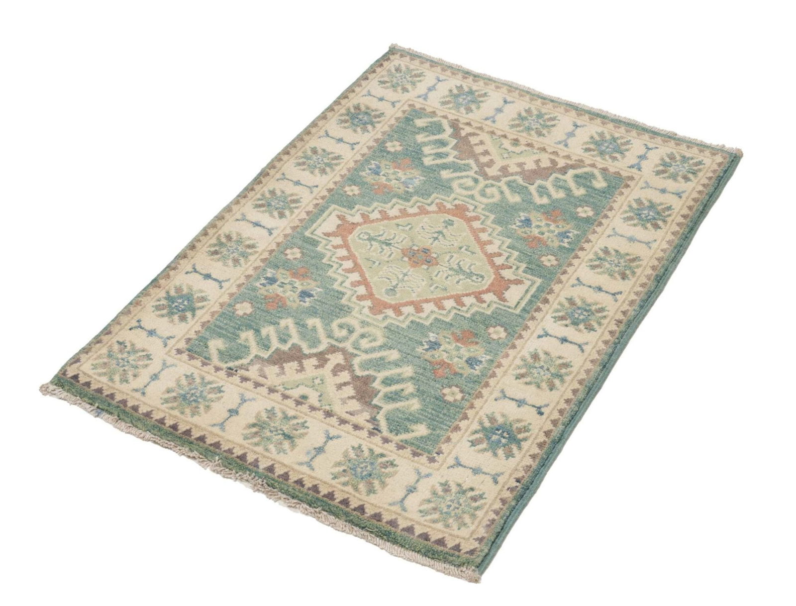 Kazak Teppich 64 x 90cm, geometrisches Muster, handgeknüpft