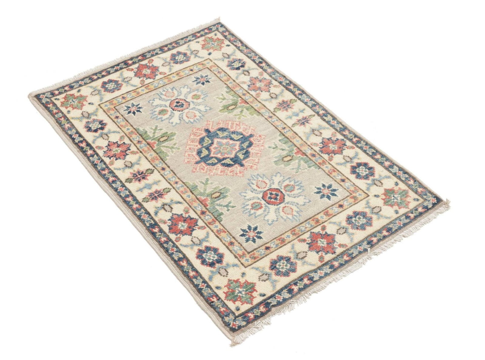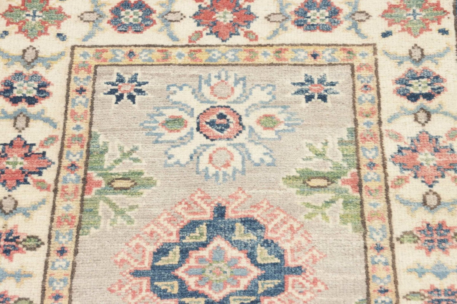 Kazak Teppich 64 x 90cm mit geometrischen Mustern | handgeknüpft
