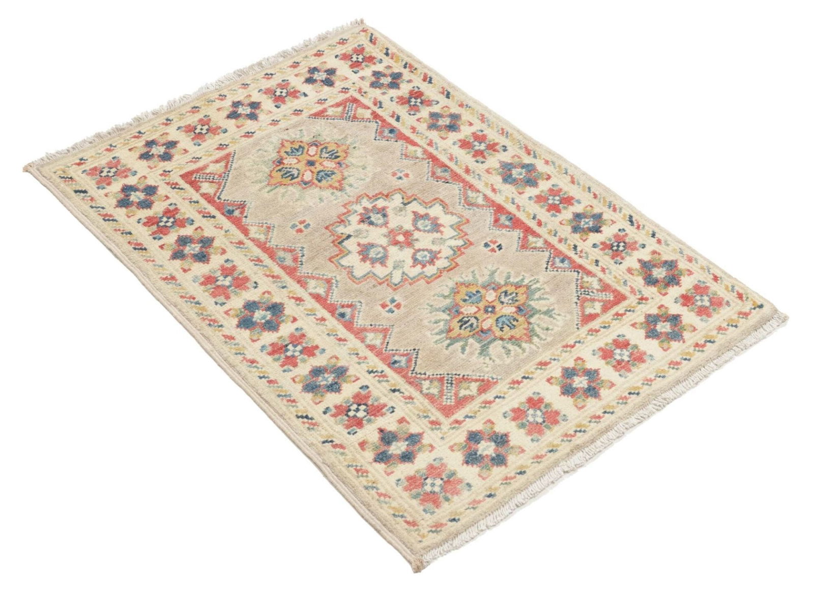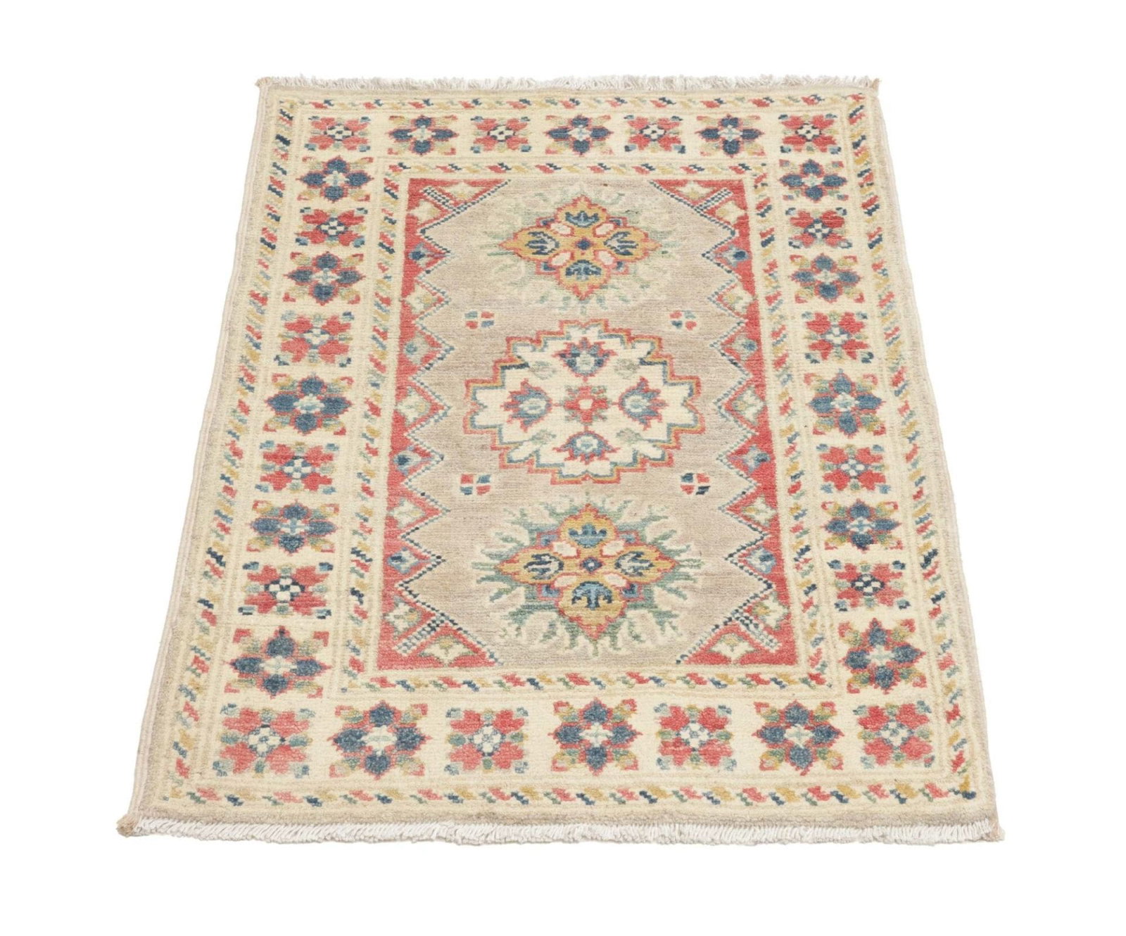 Kazak Teppich 64 x 96cm, geometrisches Muster, handgeknüpft