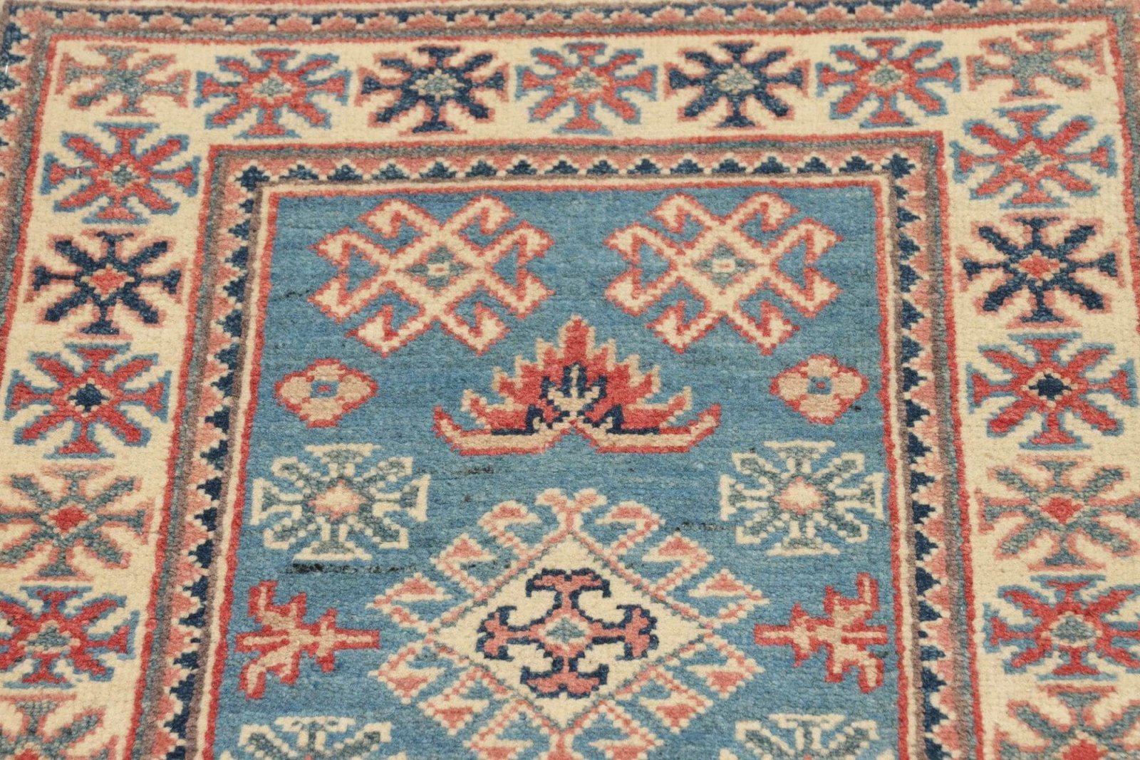 Kazak Teppich 65 x 85 cm, handgeknüpft, geometrische Muster, Schurwolle
