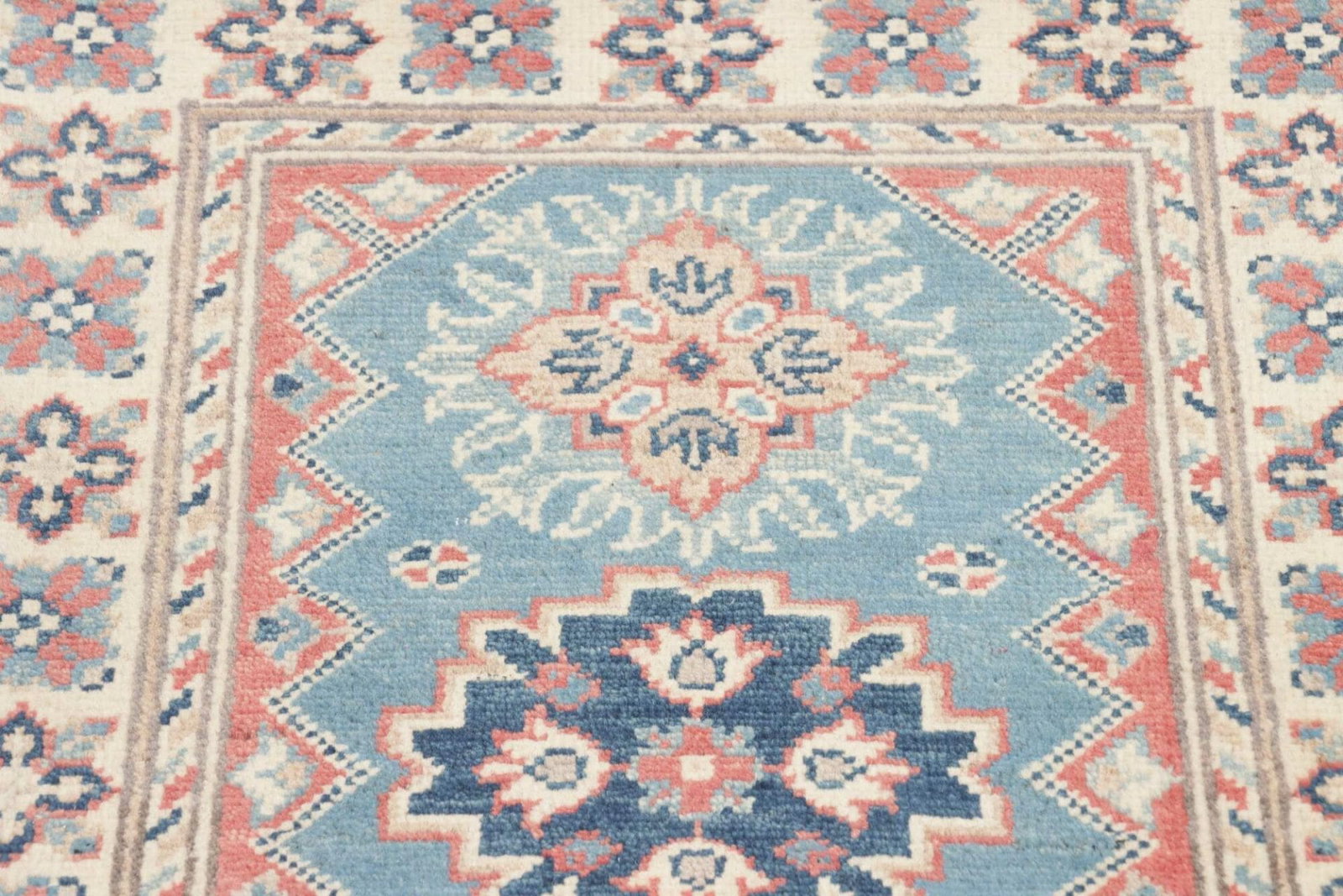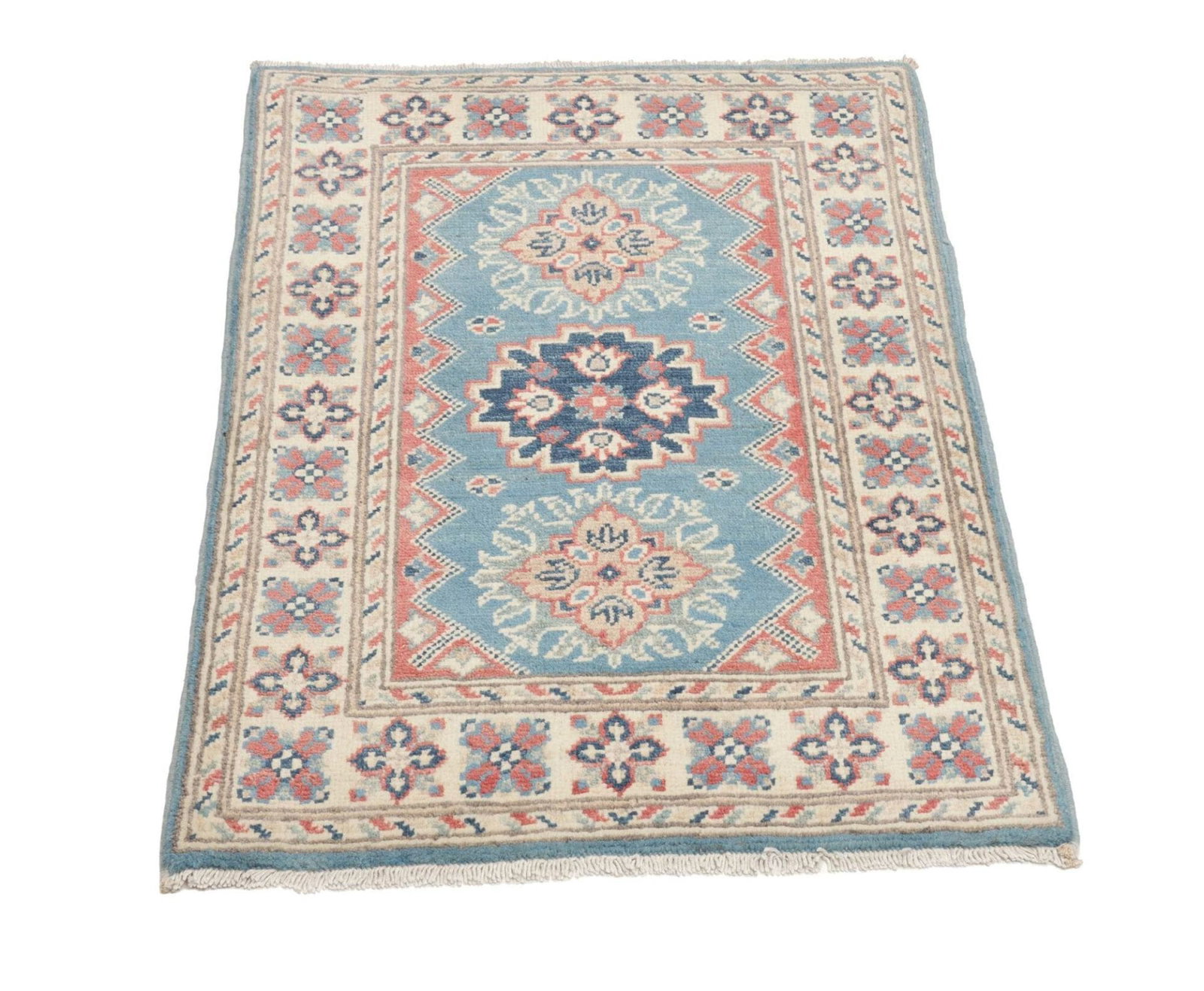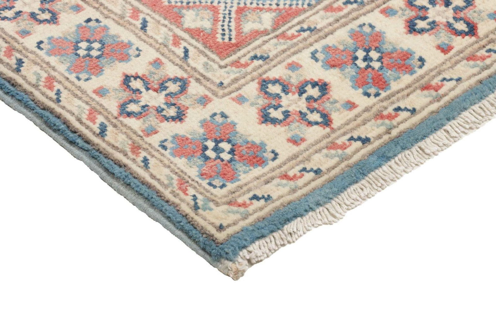 Kazak Teppich | Knotendichte: ca. 100.000 Knoten/m² | Flor: 100% Schurwolle | Kette: 100% Baumwolle | Größe: 65×90 cm | Herkunft: Pakistan | Zustand: Handgeknüpft, sehr gut erhalten
