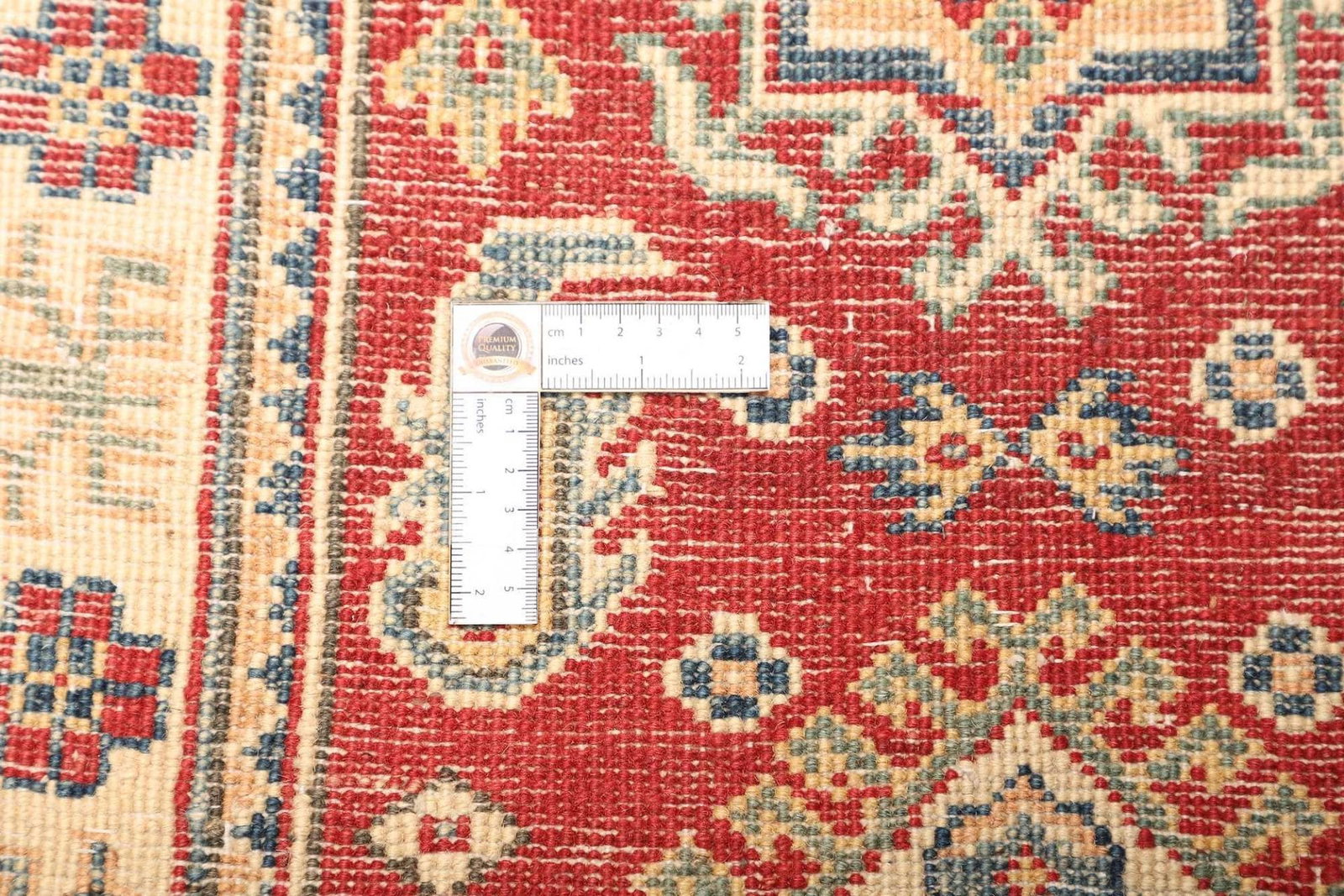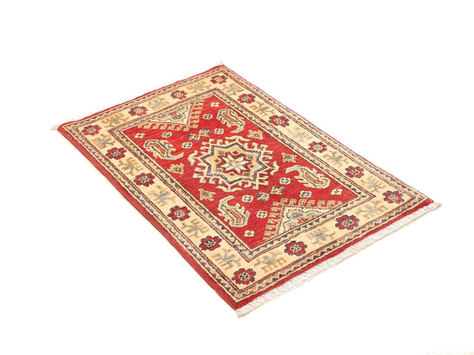 Kazak Teppich | Knotendichte: ca. 100.000 Knoten/m² | Material: 100% Schurwolle | Größe: 65 x 91 cm | Kette: 100% Baumwolle | Herkunft: Pakistan | Zustand: Handgeknüpfte Qualität mit flachem Flor