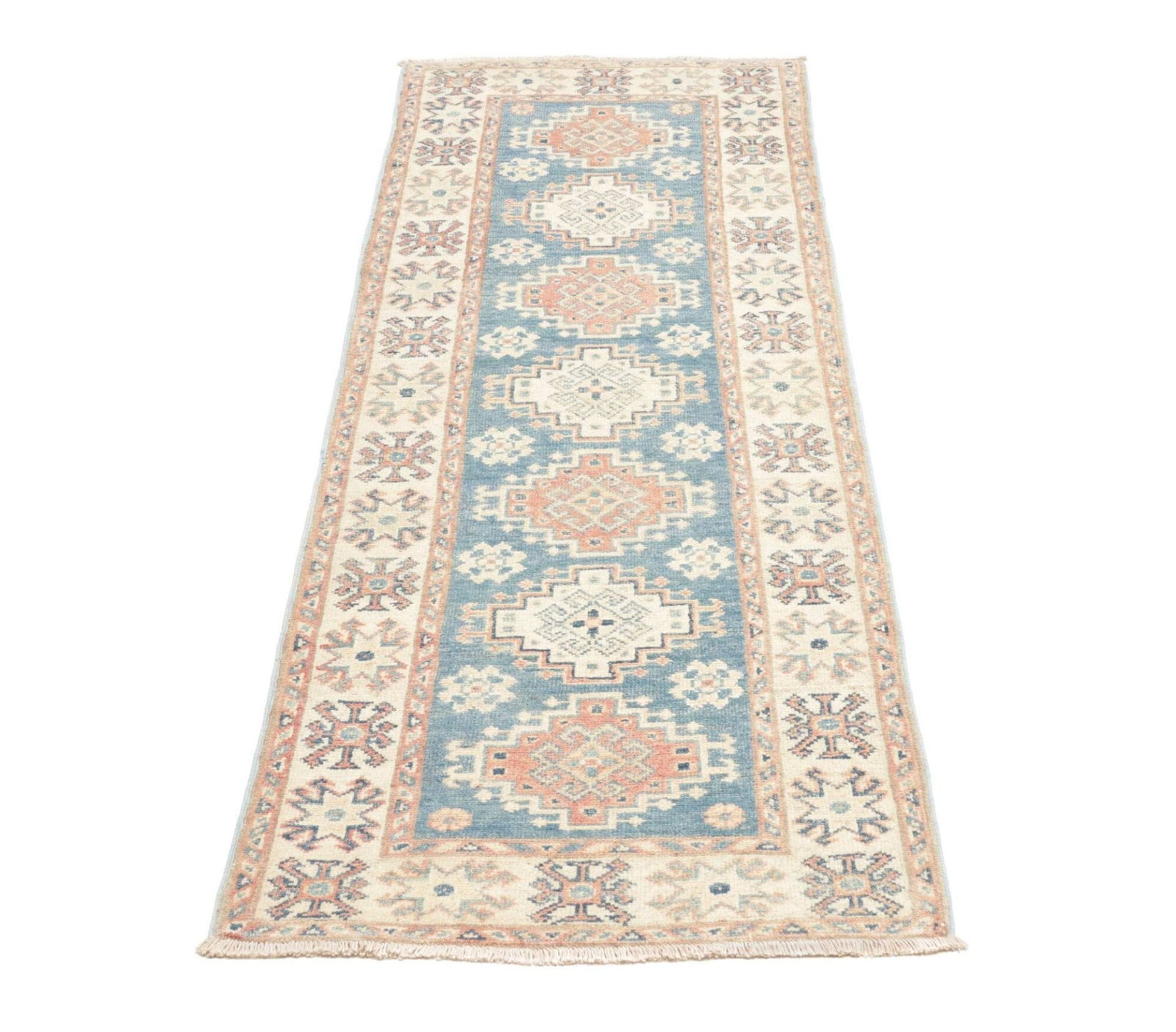 Kazak Teppich 67 x 178cm, geometrisches Muster, handgeknüpft