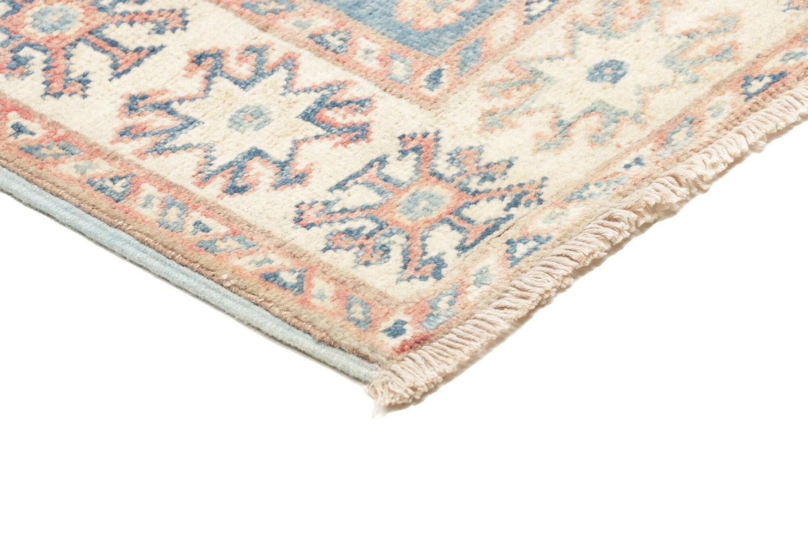 Die hochwertige Verarbeitung dieses Kazak Teppichs ist unverkennbar. Hergestellt aus feinen, strapazierfähigen Materialien, zeichnet sich dieser Teppich nicht nur durch seine Langlebigkeit aus, sondern auch durch seine weiche Haptik. Die handgeknüpfte Technik sorgt dafür, dass jedes Stück ein Unikat ist, in das Herzblut und viel handwerkliches Geschick geflossen sind. Dank der hohen Knotendichte ist der Teppich besonders robust und ideal für stark frequentierte Bereiche in Ihrem Zuhause.