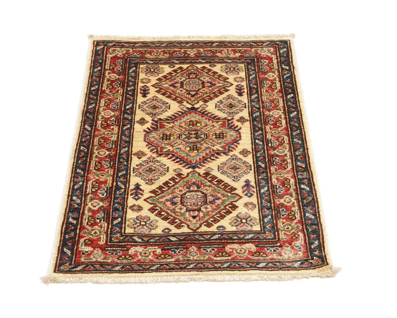 Kazak Teppich 67 x 90cm – Handgeknüpft, geometrische Muster, Wolle