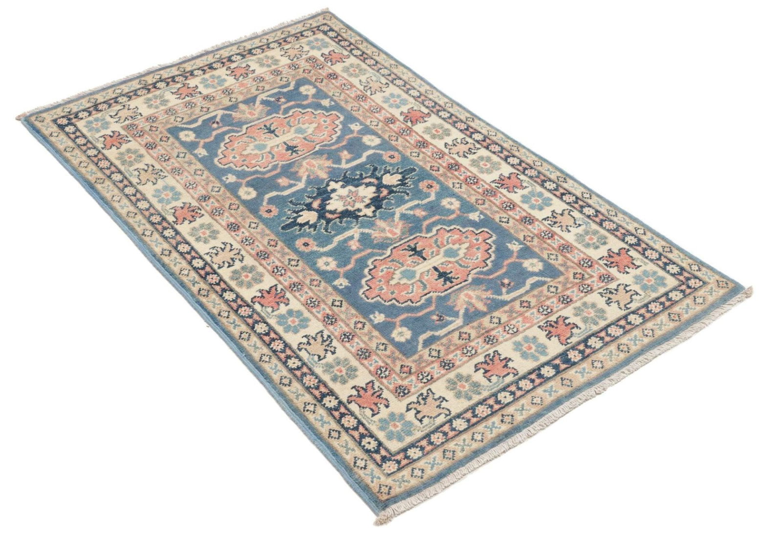 Kazak Teppich 80 x 130cm, geometrisches Muster, handgeknüpft