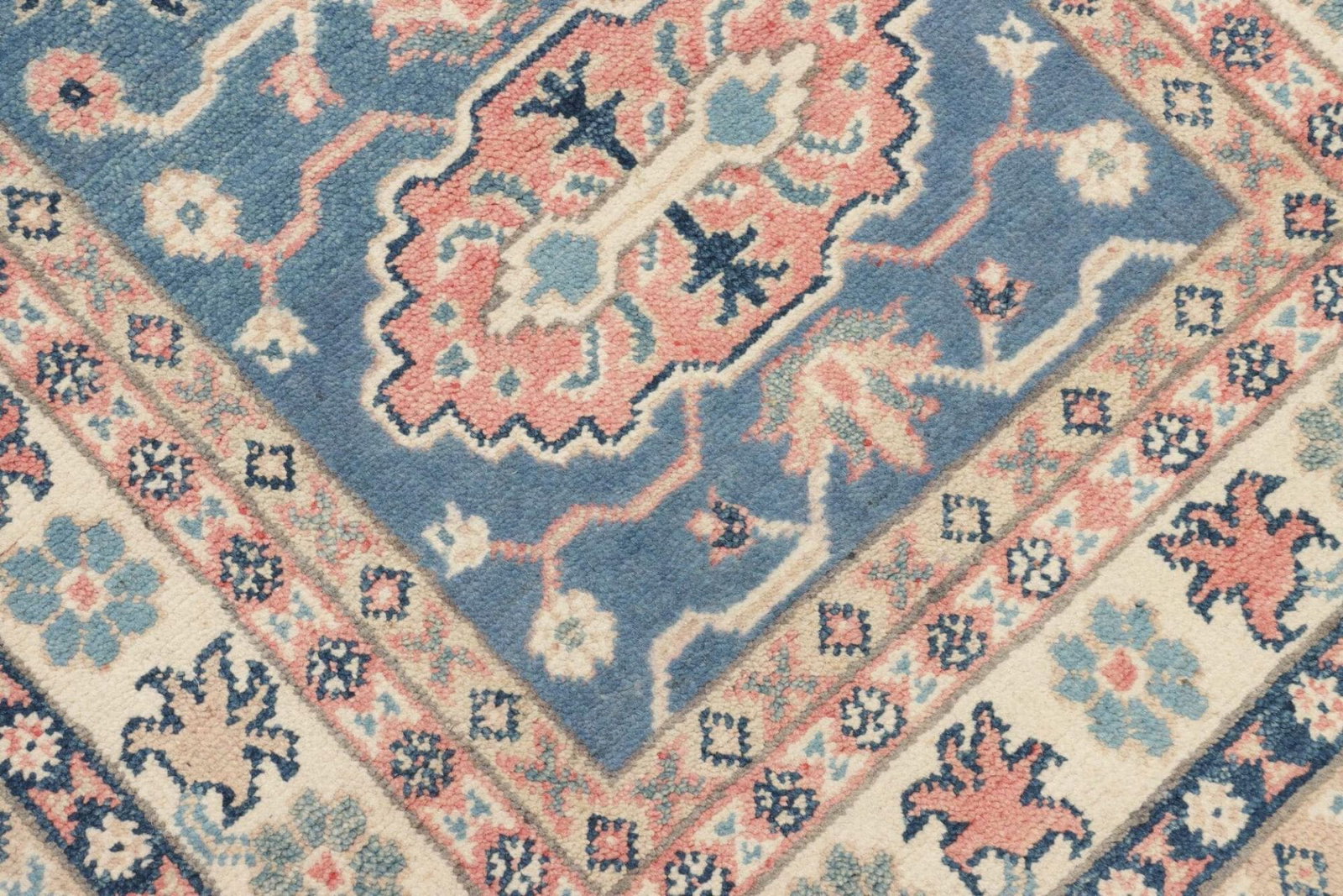 Die kräftigen Farben, die in diesem Teppich verwendet werden, sind typisch für Kazak Produkte und zeugen von der hohen Qualität der verwendeten Farbstoffe, die aus natürlichen Quellen gewonnen werden. Diese lebendigen Farben verleihen jedem Raum einen Hauch von Wärme und Persönlichkeit und machen den Teppich zu einem Mittelpunkt jeder Einrichtung.