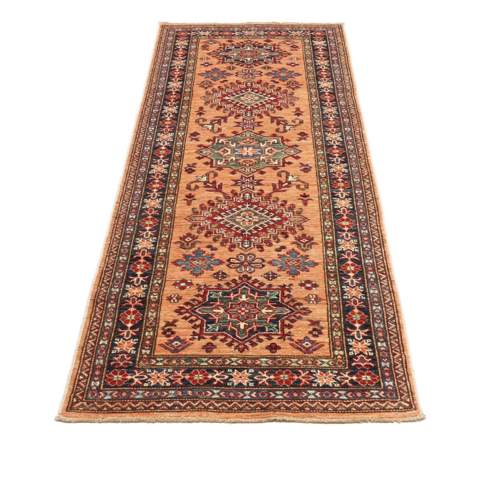 Kazak Teppich 82 x 214 cm, geometrische Muster, handgeknüpft