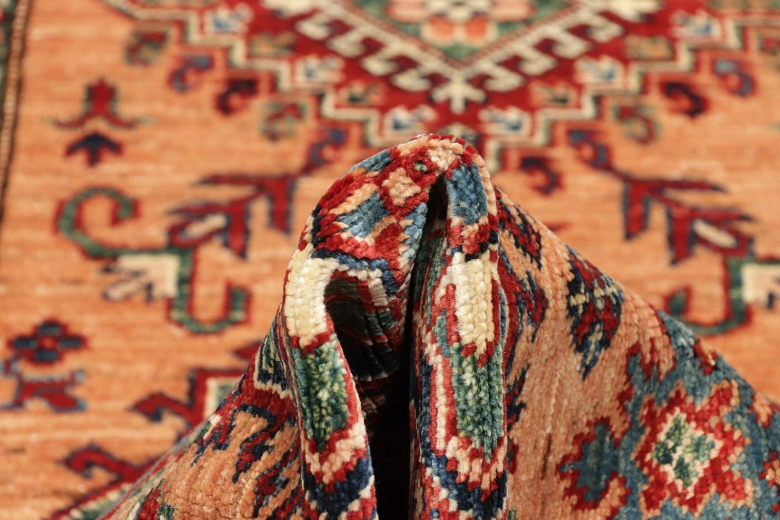 Darüber hinaus vermitteln die kräftigen Farben des Teppichs, die typischerweise aus natürlichen Pflanzenstoffen gewonnen werden, ein Gefühl von Wärme und Behaglichkeit. Diese Eigenschaften machen den Kazak Teppich äußerst vielseitig einsetzbar – ob im Wohnzimmer, Schlafzimmer oder auch in Eingangsbereichen, er wertet jeden Raum auf und lädt zum Verweilen ein.