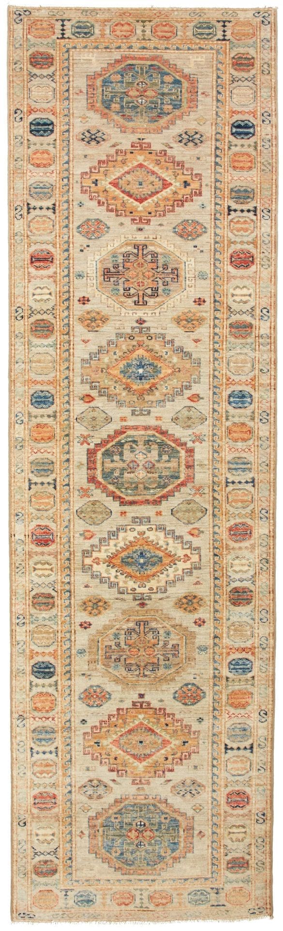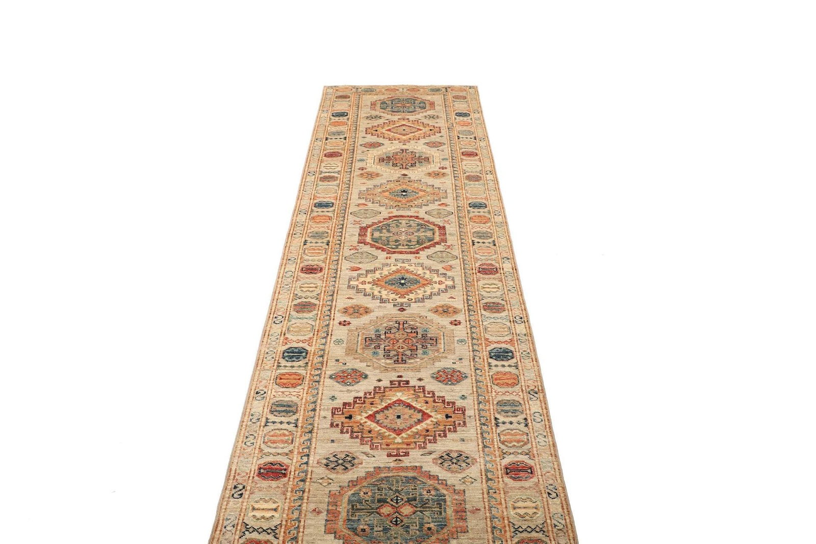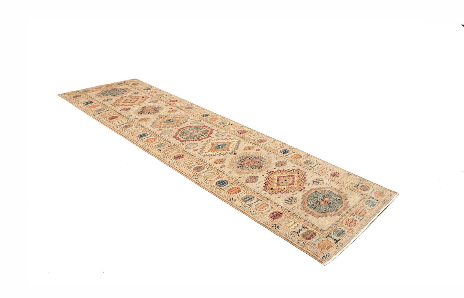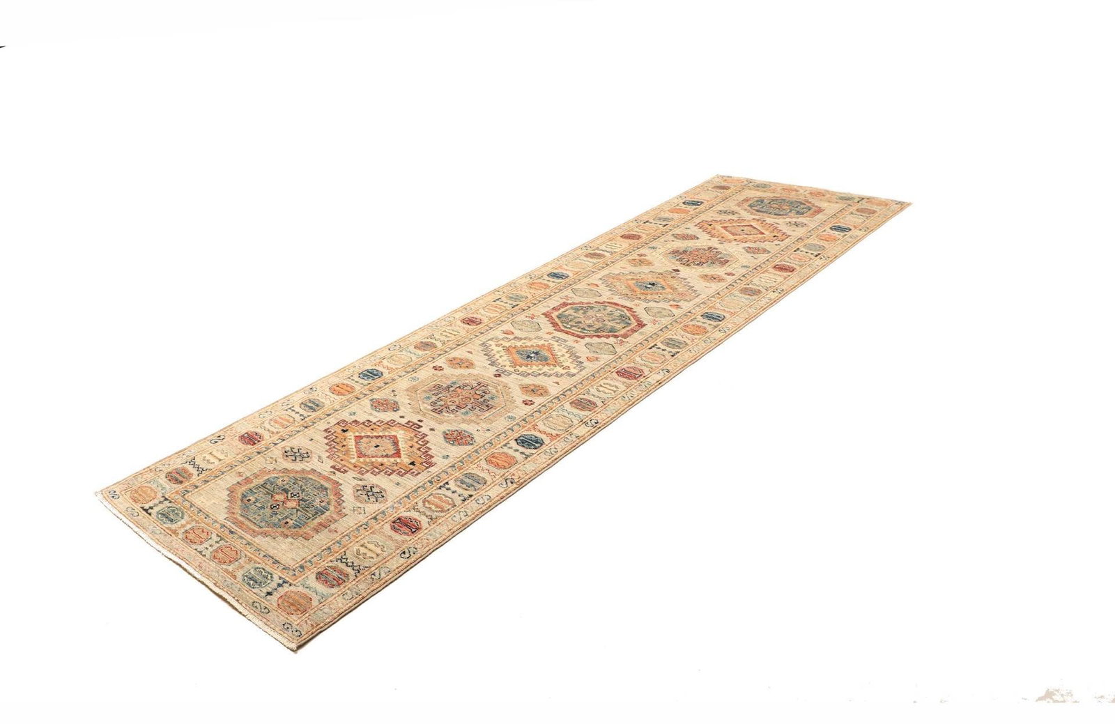 Kazak Teppich 83 x 290 cm, geometrisch, Schurwolle, handgeknüpft