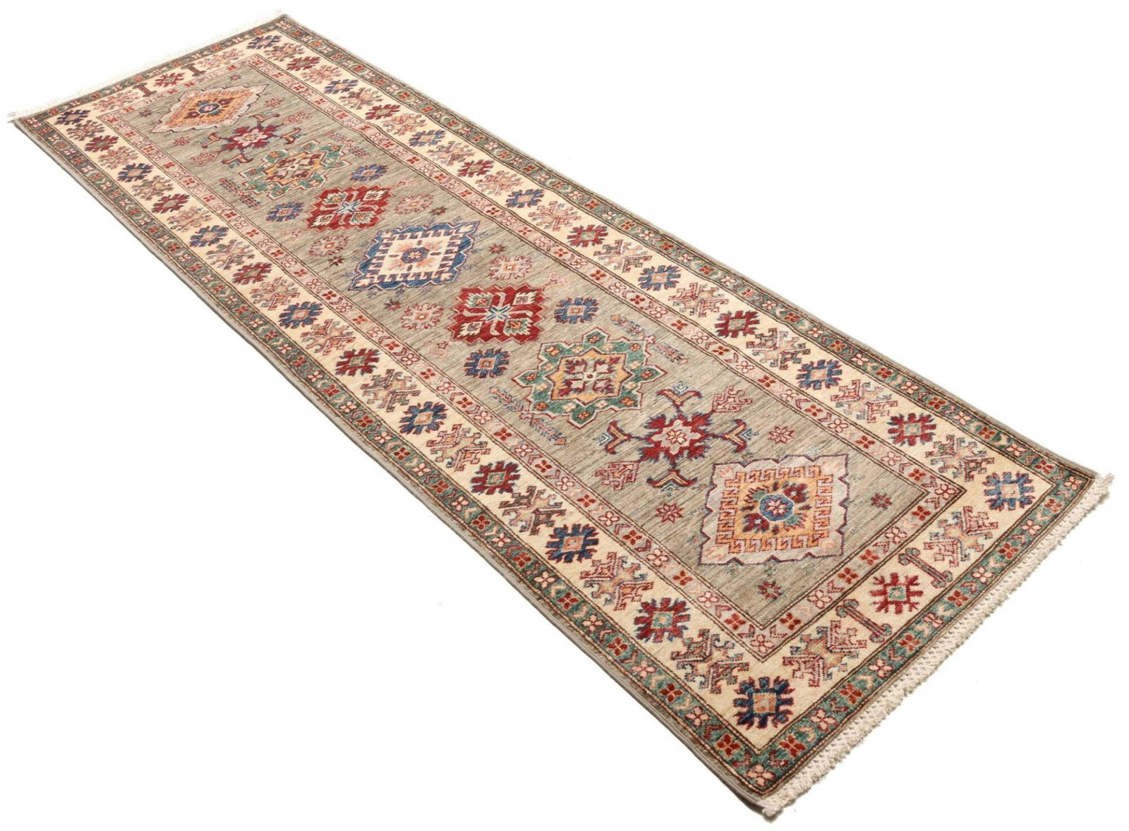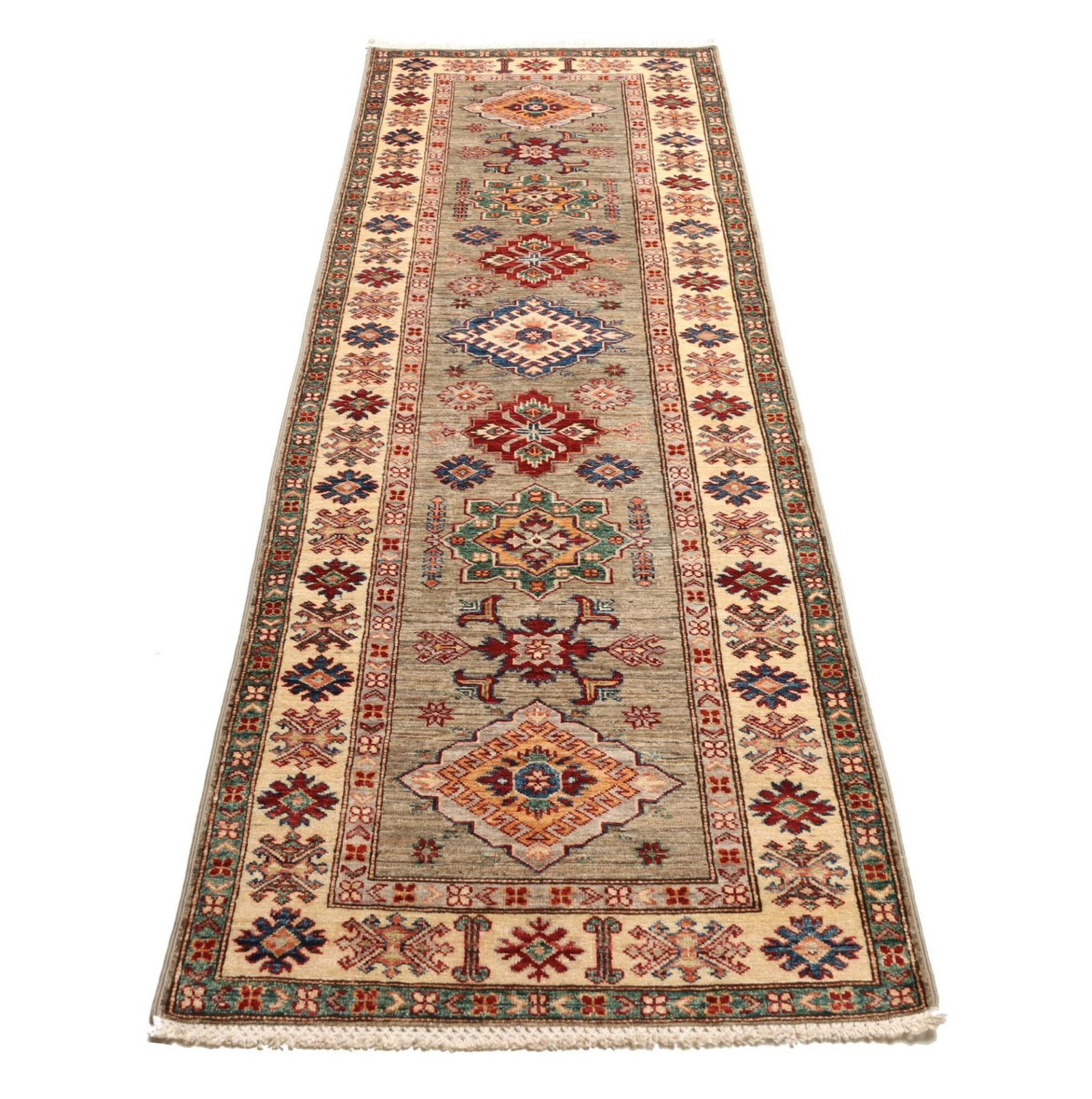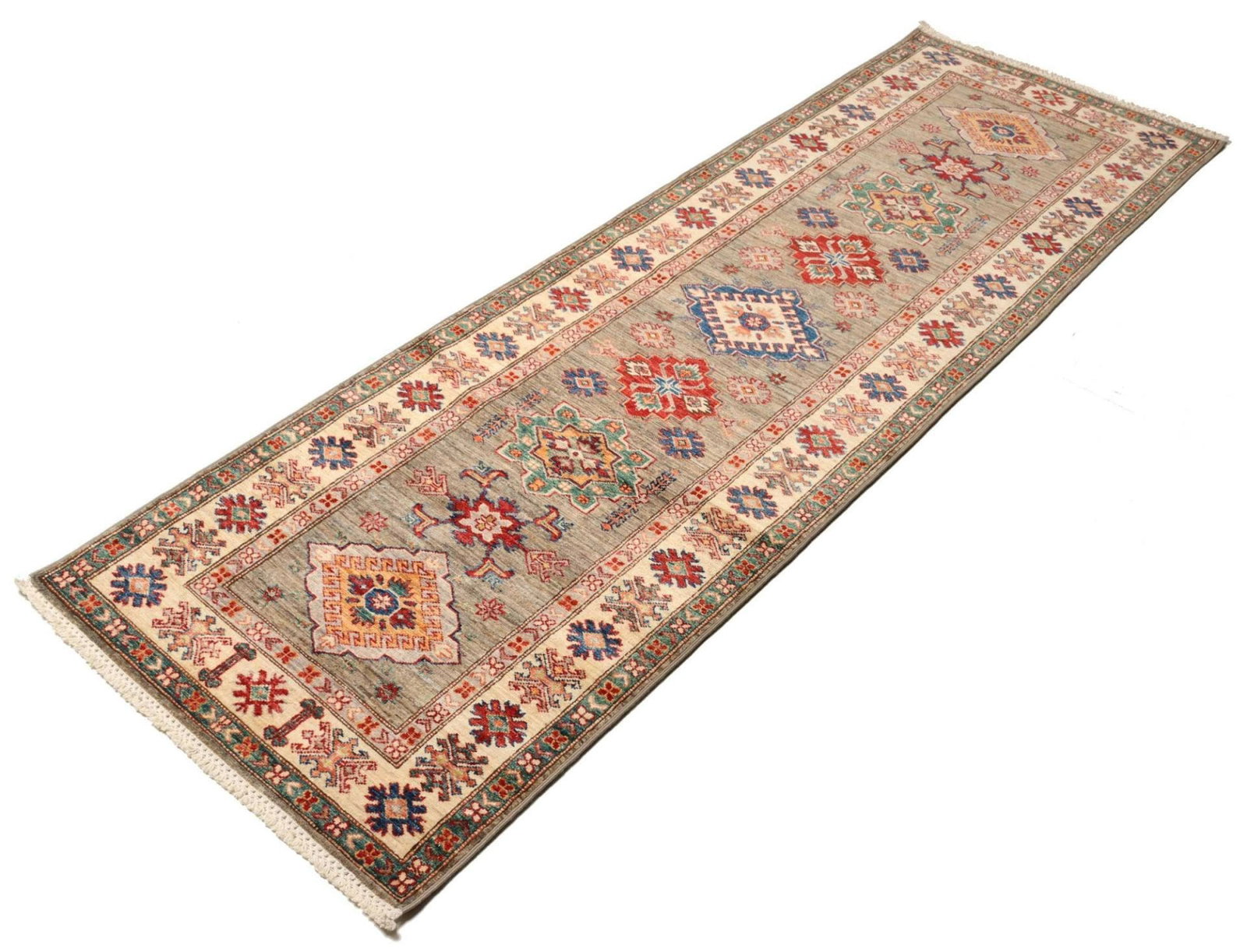 1265$Ursprünglicher Preis war: 1265$1002$Aktueller Preis ist: 1002$Kazak Teppich | Knotendichte: ca. 200.000 Knoten/m² | Material: 100% Schurwolle | Kette: 100% Baumwolle | Größe: 85×257 cm | Herkunft: Pakistan | Zustand: Handgeknüpft, ausgezeichnete Qualität