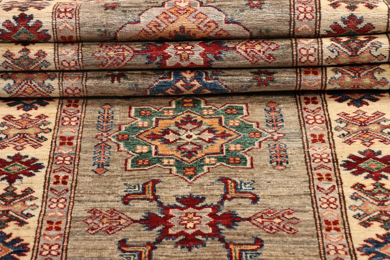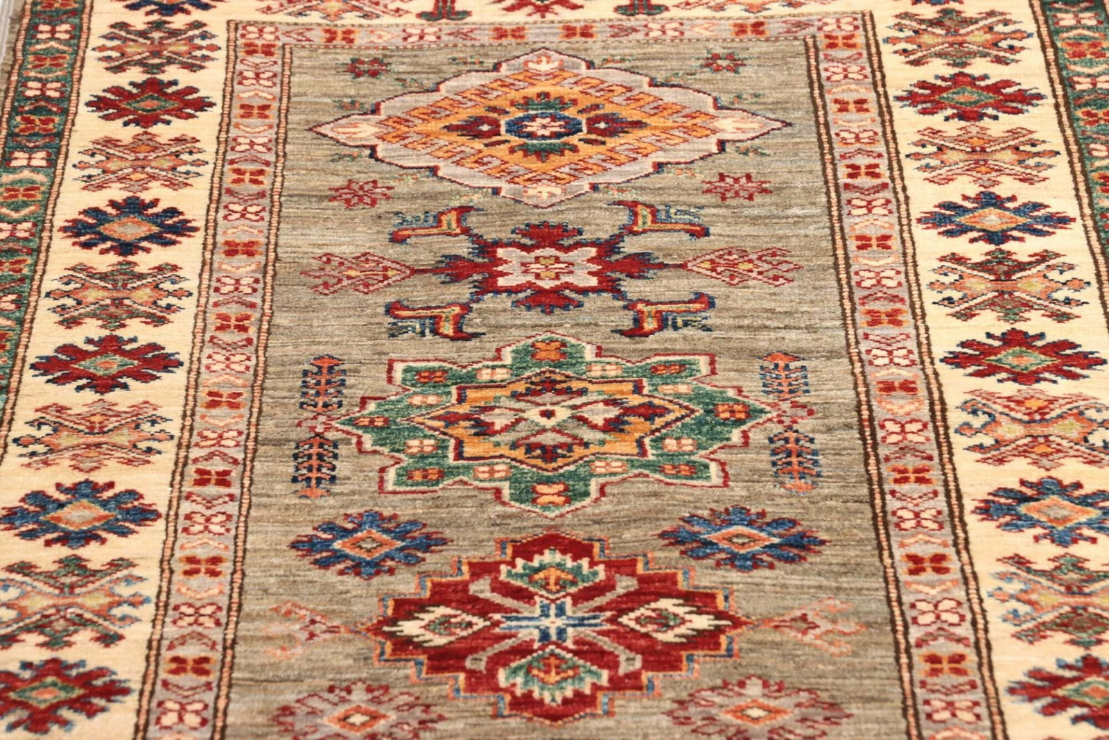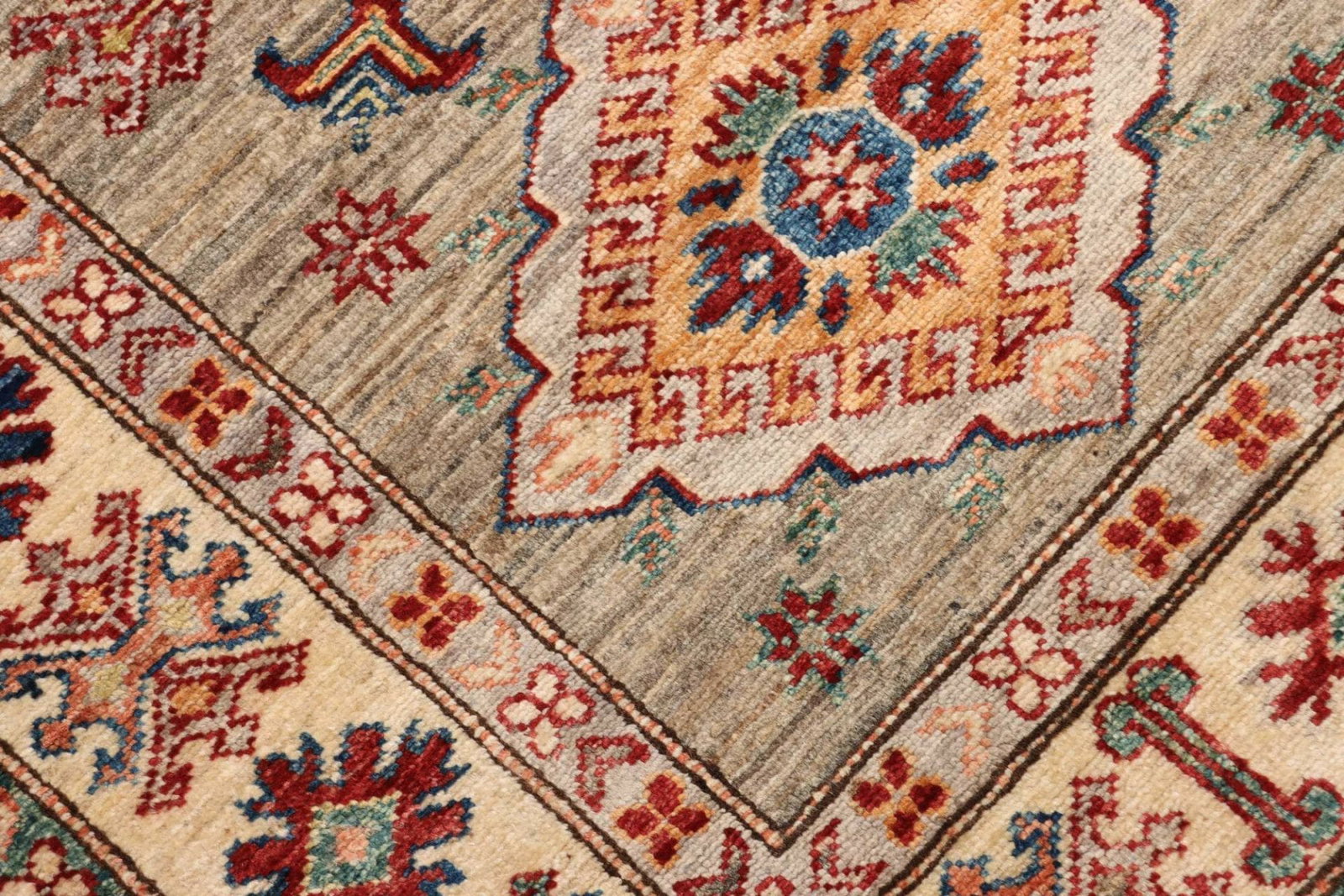 Kazak Teppich – handgeknüpft mit geometrischen Mustern