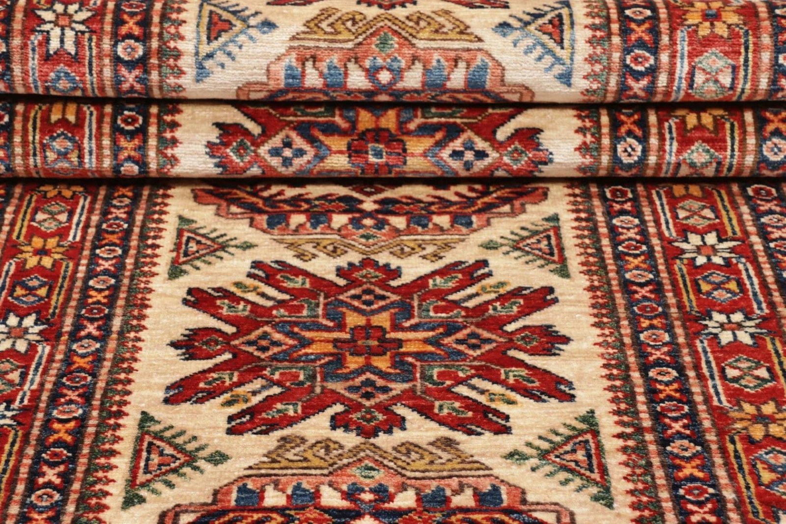 Der Kazak Teppich verbindet Handwerkskunst mit zeitlosem Design und ist die perfekte Ergänzung für jedes Zuhause. Mit seinem geometrischen Muster und der hochwertigen handgeknüpften Verarbeitung erhalten Sie nicht nur ein dekoratives Element, sondern auch ein Stück Geschichte und Tradition.