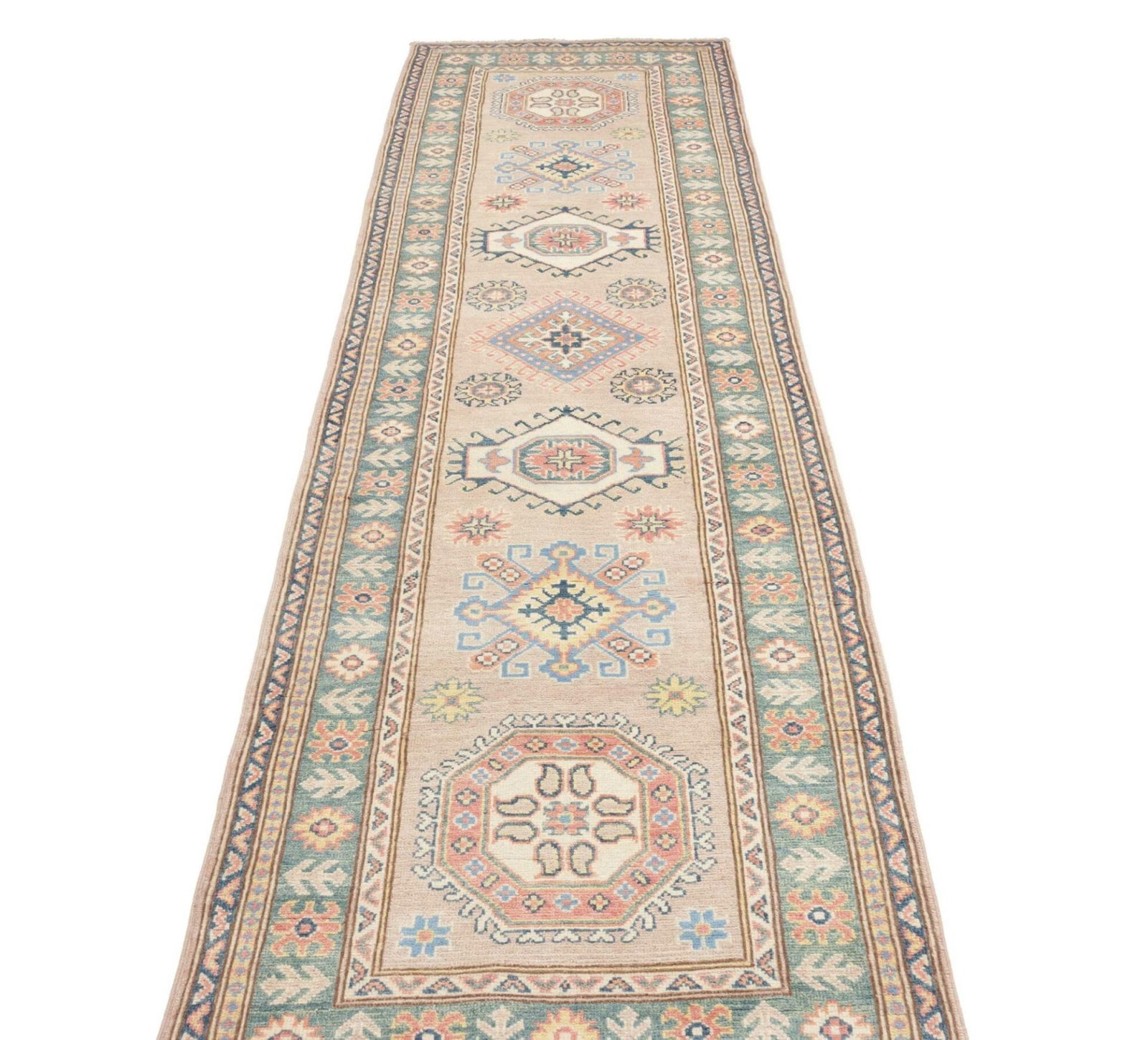 Kazak Teppich 85 x 295cm, geometrisches Muster, handgeknüpft