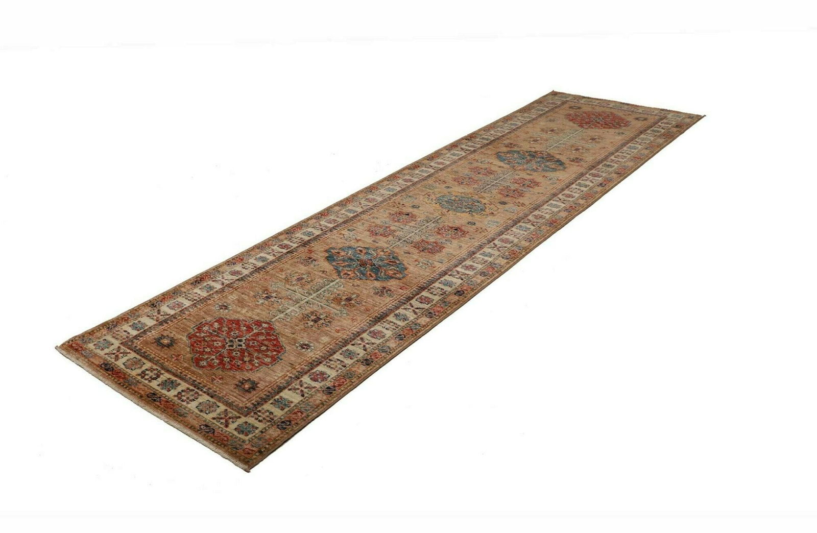 Kazak Teppich 85 x 297 cm, geometrisches Muster, handgeknüpft