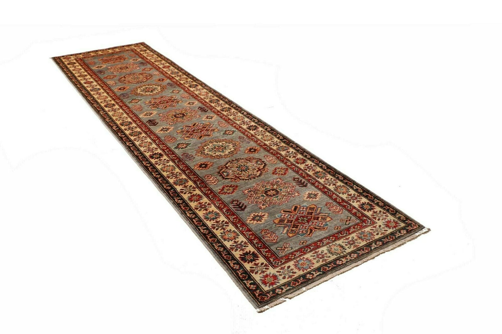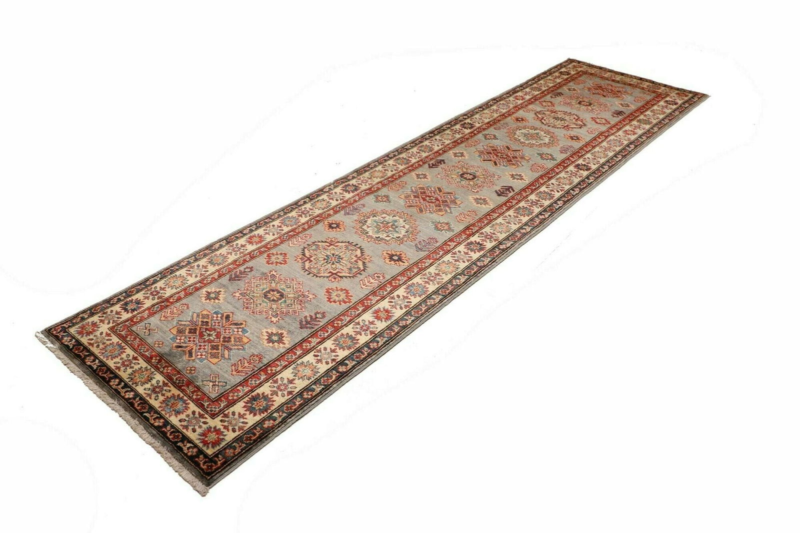 Kazak Teppich | Knotendichte: ca. 200.000 Knoten/m² | Material: 100% Schurwolle | Größe: 85×313 cm | Zustand: Handgeknüpfte Qualität | Herkunft: Pakistan | Muster: Geometrische Figuren und Muster