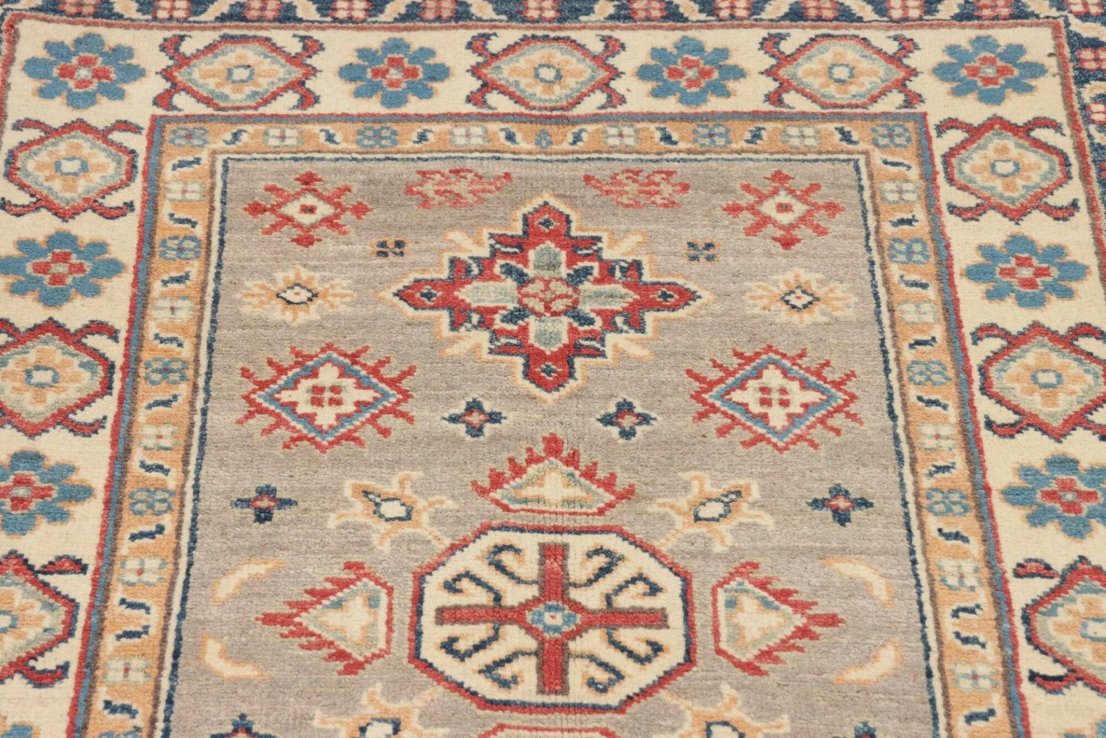 Kazak Teppich 86 x 125 cm mit geometrischem Muster, handgeknüpft