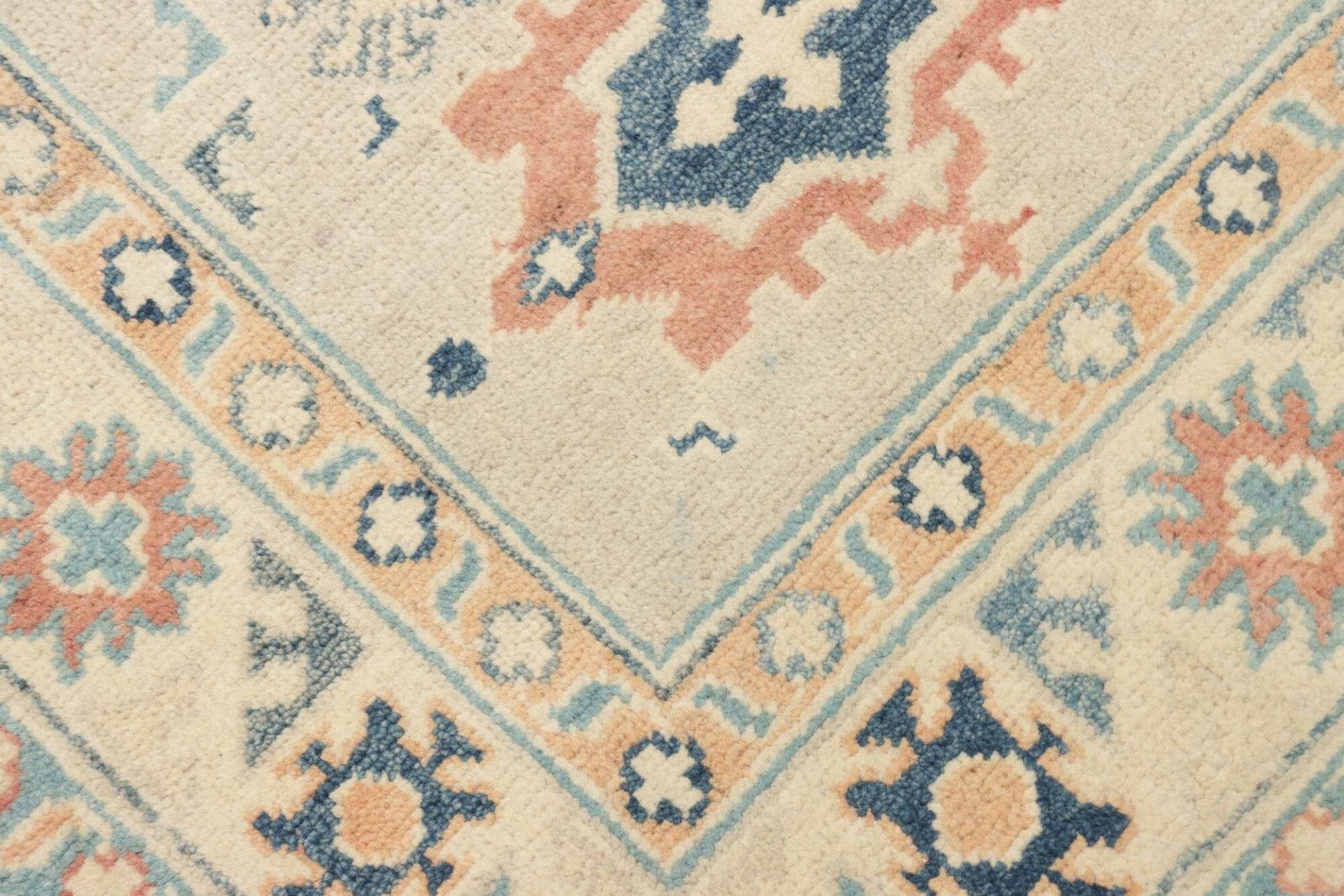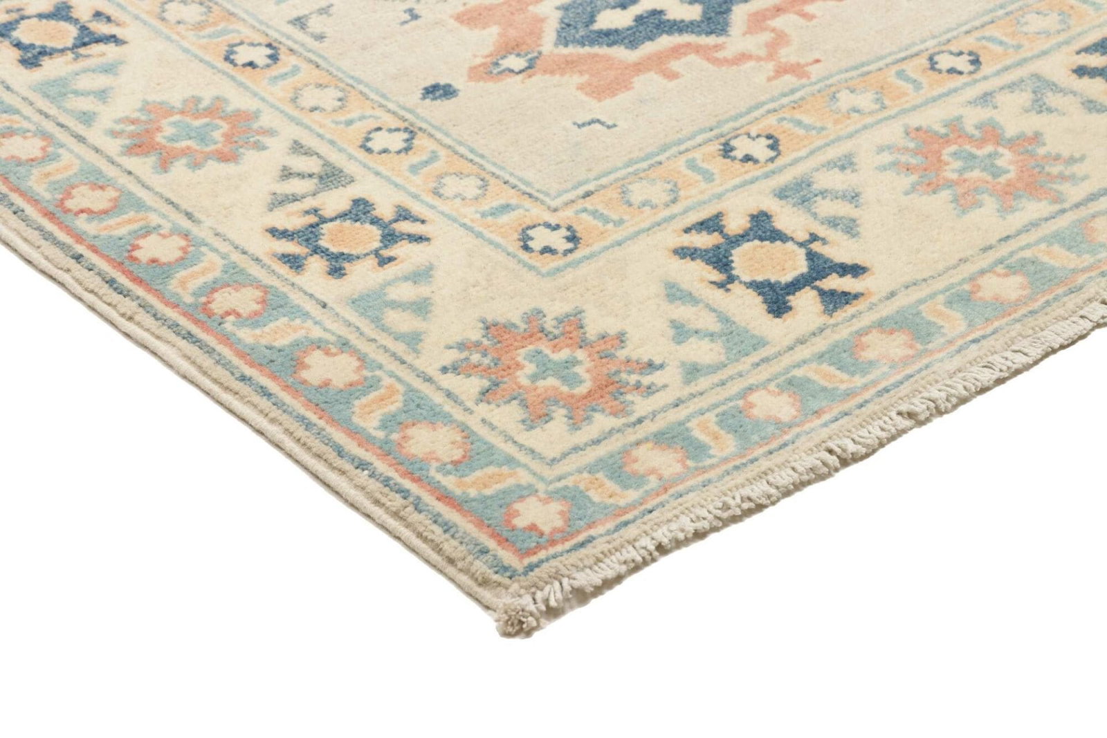 Die Qualität eines Teppichs beruht maßgeblich auf den verwendeten Materialien und der Verarbeitungstechnik. Dieser Kazak Teppich ist handgeknüpft, was bedeutet, dass jeder Knoten mit viel Geduld und handwerklichem Geschick gesetzt wurde. In der Regel werden bei handgeknüpften Teppichen hochwertige Wolle und Baumwolle verwendet, die den Teppich nicht nur robust, sondern auch angenehm weich machen. Dank der hohen Knotendichte erleben Sie eine außergewöhnliche Strapazierfähigkeit, die sich über Jahrzehnte hinweg bewährt.