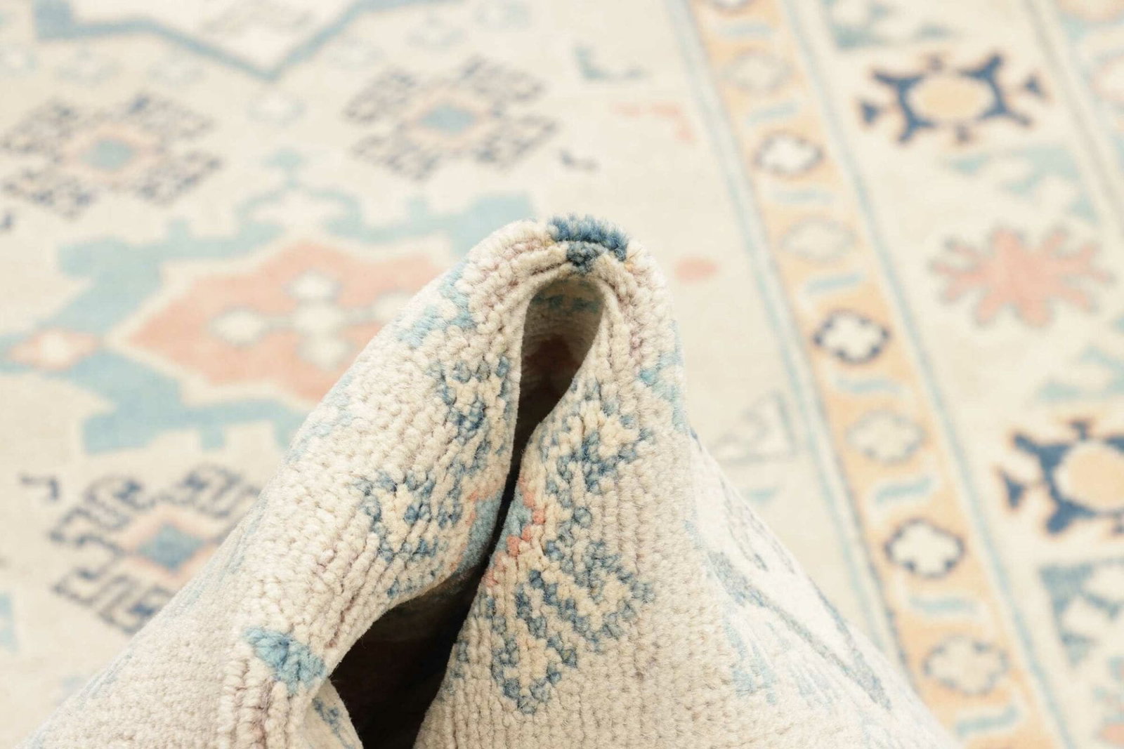 Ein weitere Besonderheit des Kazak Teppichs ist die hohe Knotendichte, die für Qualität und Langlebigkeit spricht. Diese ausdrucksvollen Teppiche sind nicht nur stark, sie sind auch pflegeleicht. Die Wollfasern sind von Natur aus schmutzabweisend, wodurch sich der Teppich auch in stark frequentierten Räumen bewährt. Darüber hinaus verleiht die Handknüpfung jedem Teppich einen einzigartigen Charakter. Kein Teppich ist wie der andere, was ihn zu einem exklusiven Stück macht.