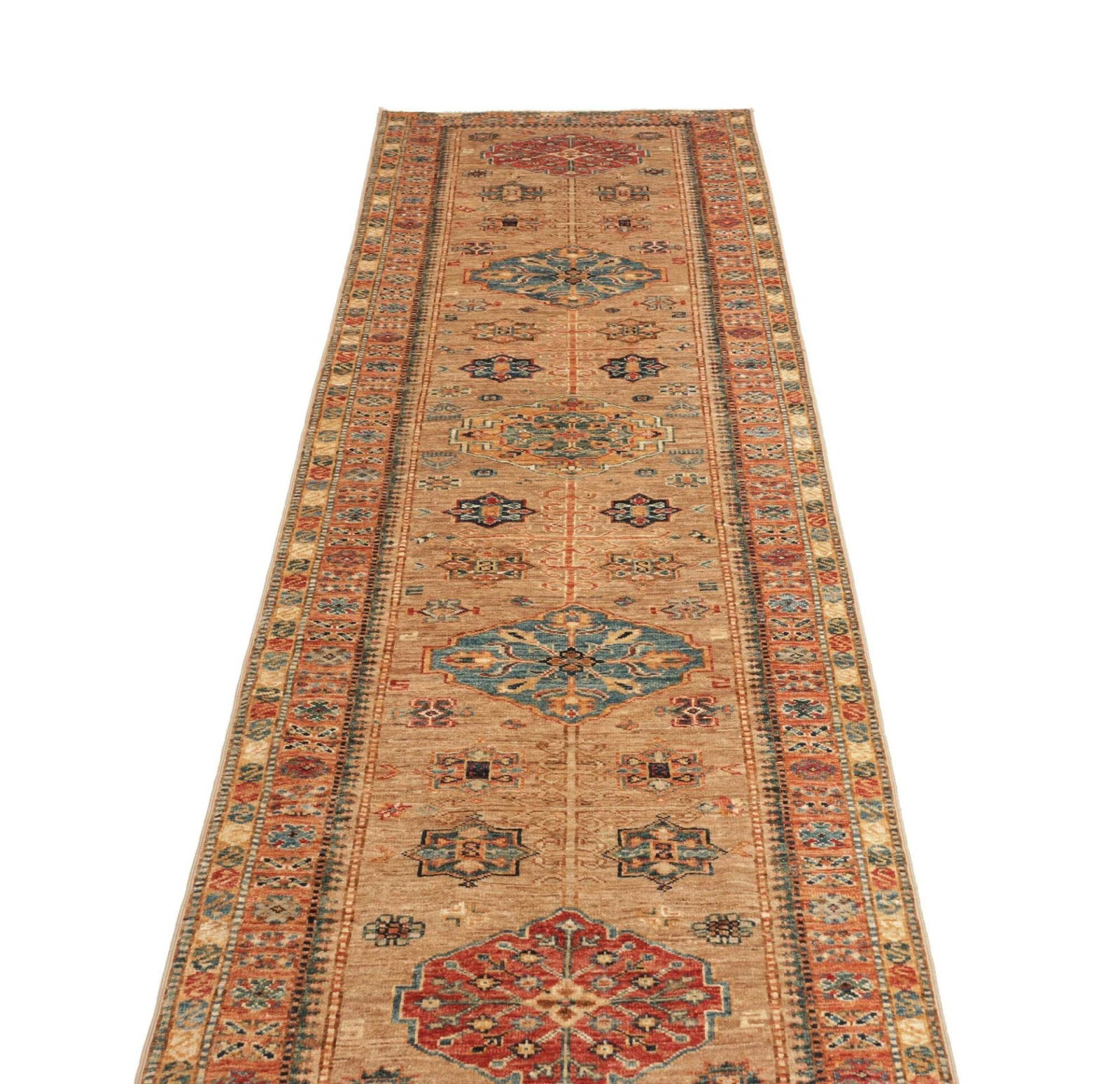 Kazak Teppich | Knotendichte: ca. 200.000 Knoten/m² | Material: 100% Schurwolle | Größe: 86 x 296 cm | Zustand: Sehr gut | Herkunft: Pakistan | Verarbeitung: Handgeknüpft | Charakteristisch: Geometrische Muster und Figuren