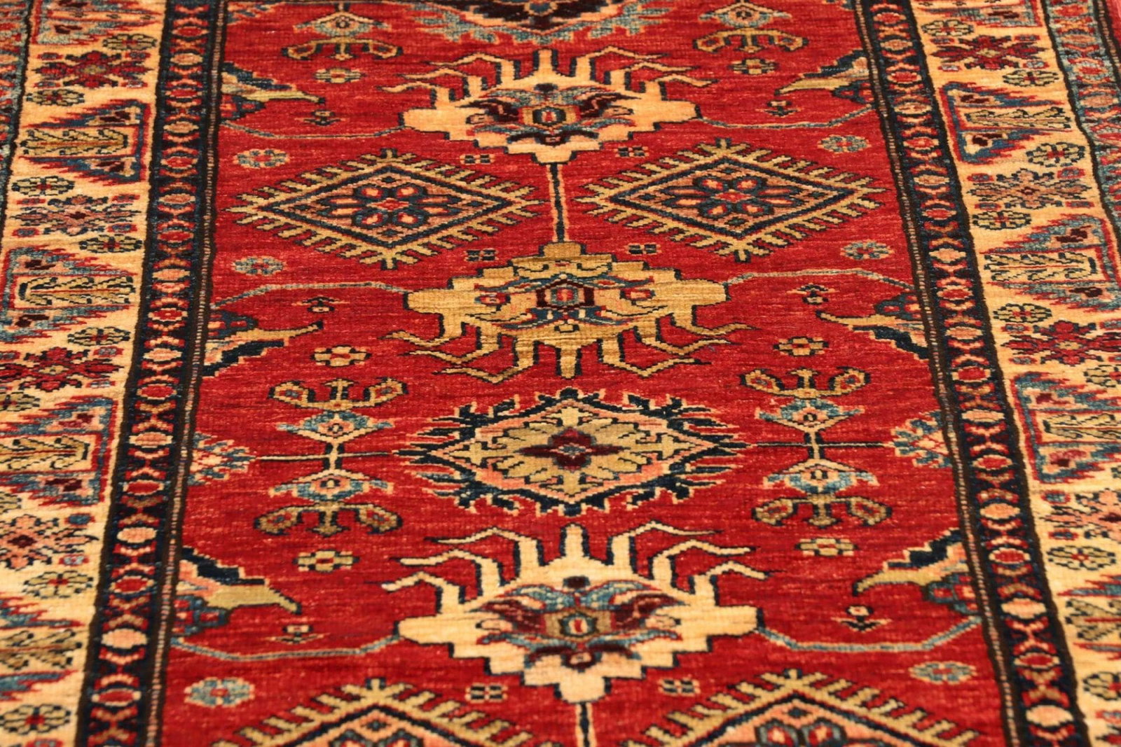 Kazak Teppich | Knotendichte: ca. 200.000 Knoten/m² | Material: 100% Schurwolle | Kette: 100% Baumwolle | Größe: 86 x 303 cm | Herkunft: Pakistan | Zustand: Handgeknüpft, sehr gut erhalten