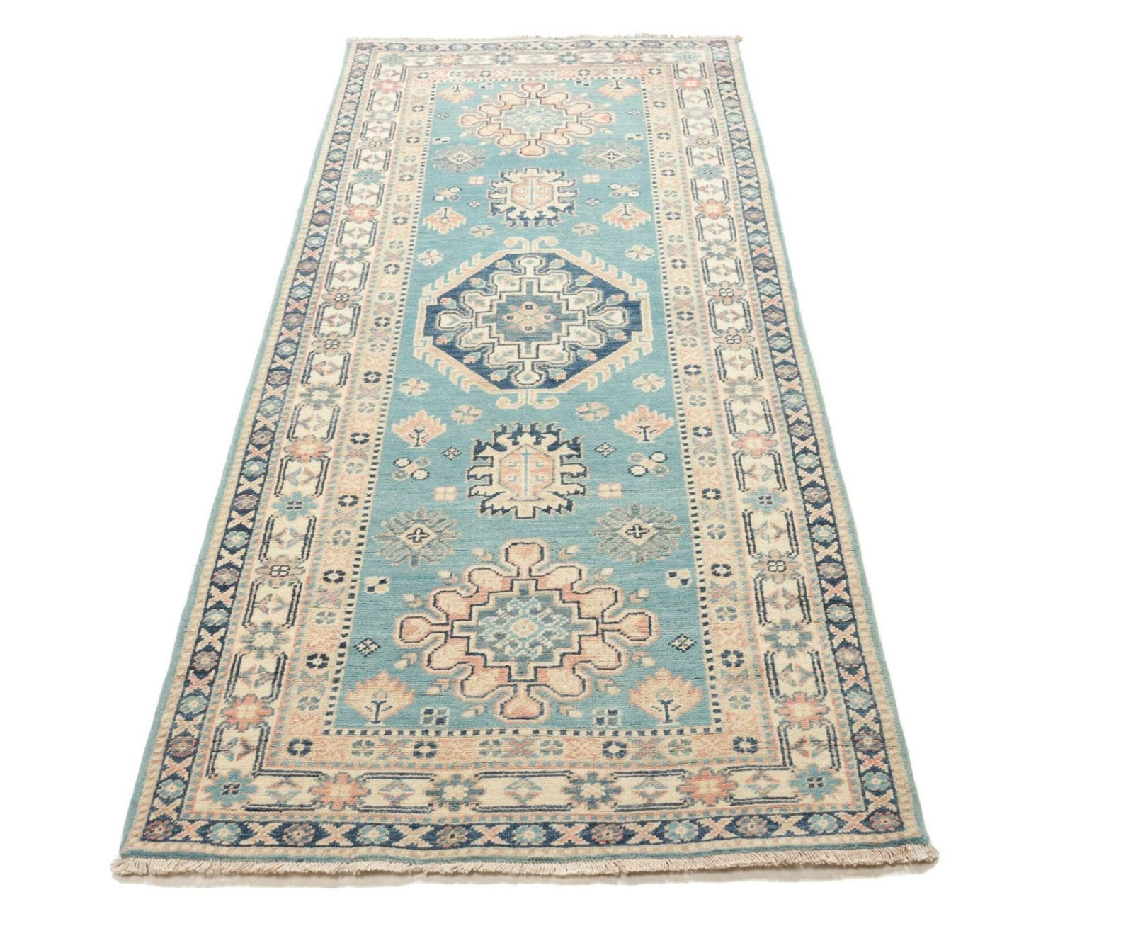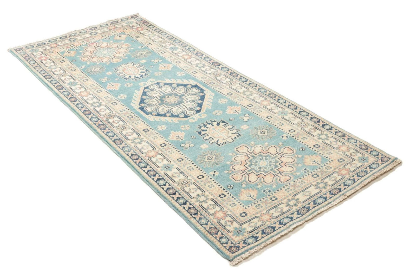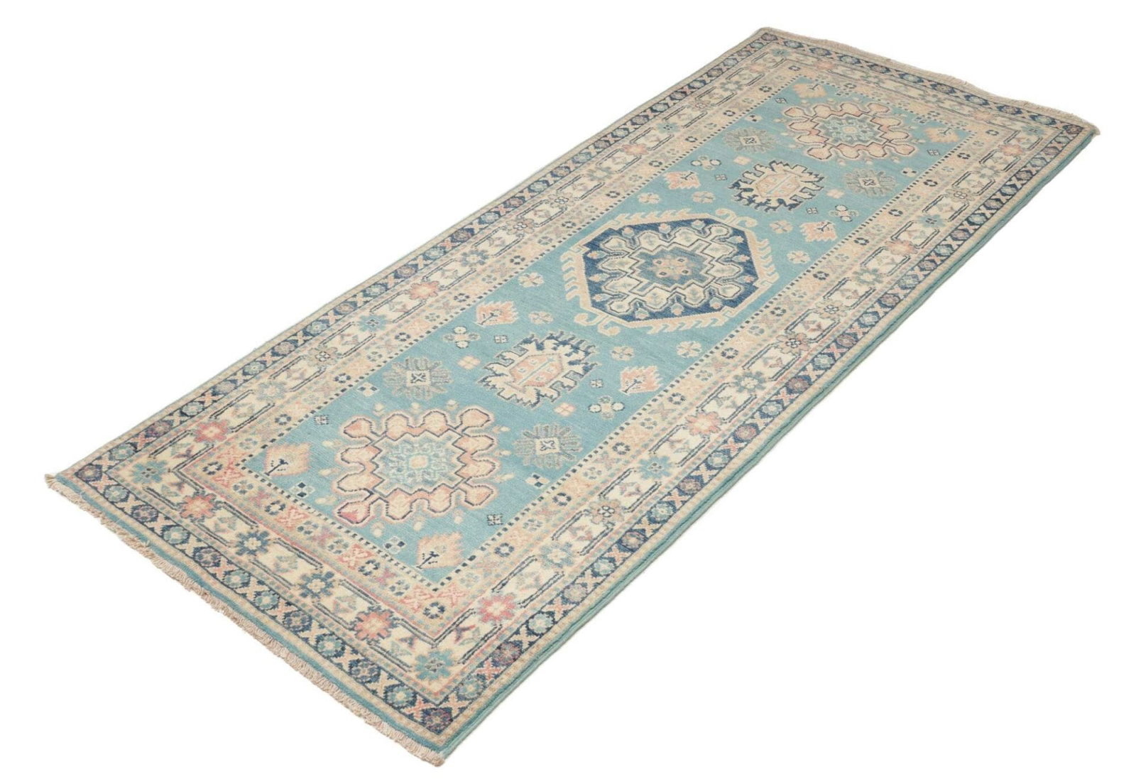 Kazak Teppich 87 x 200cm, geometrische Muster, handgeknüpft