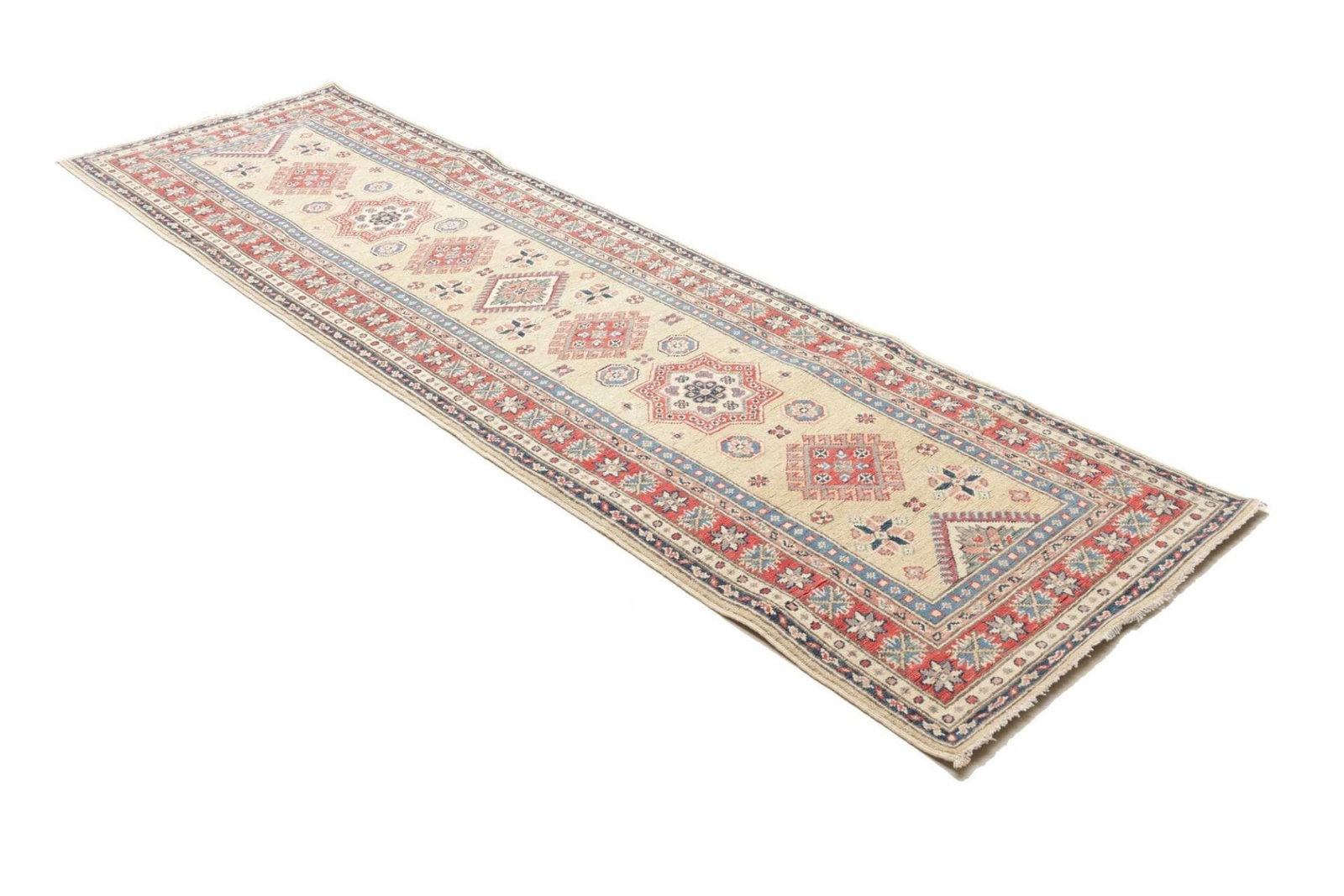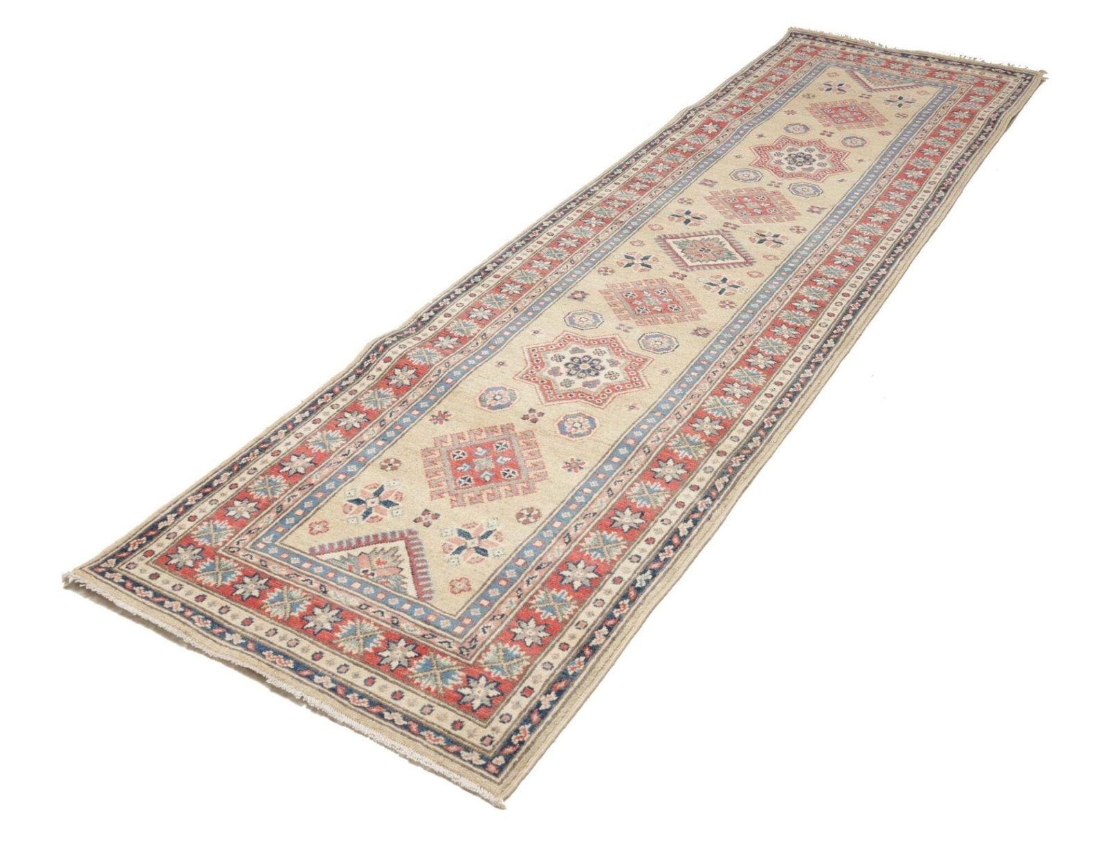 777$Ursprünglicher Preis war: 777$696$Aktueller Preis ist: 696$Kazak Teppich | Knotendichte: ca. 100.000 Knoten/m² | Material: 100% Schurwolle (Flor), 100% Baumwolle (Kette) | Größe: 87 x 291 cm | Verarbeitung: Handgeknüpft | Herkunft: Pakistan | Zustand: Sehr gut