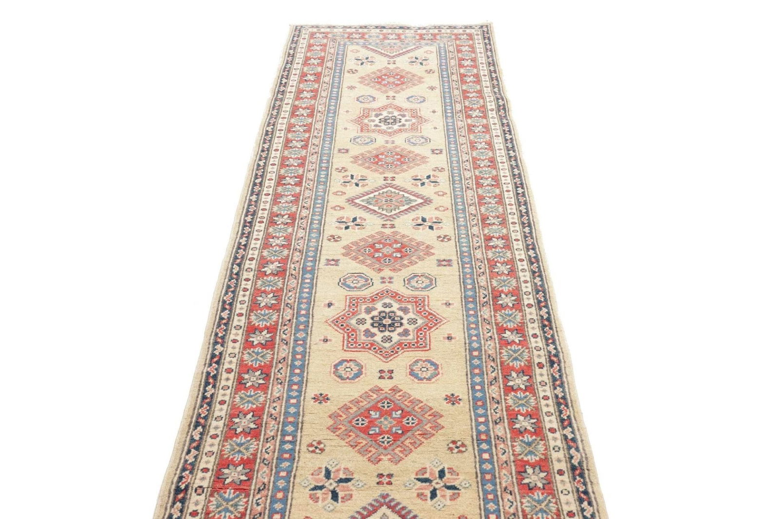 (Verkauft) Kazak Teppich 87 x 291 cm, geometrische Muster, handgeknüpft