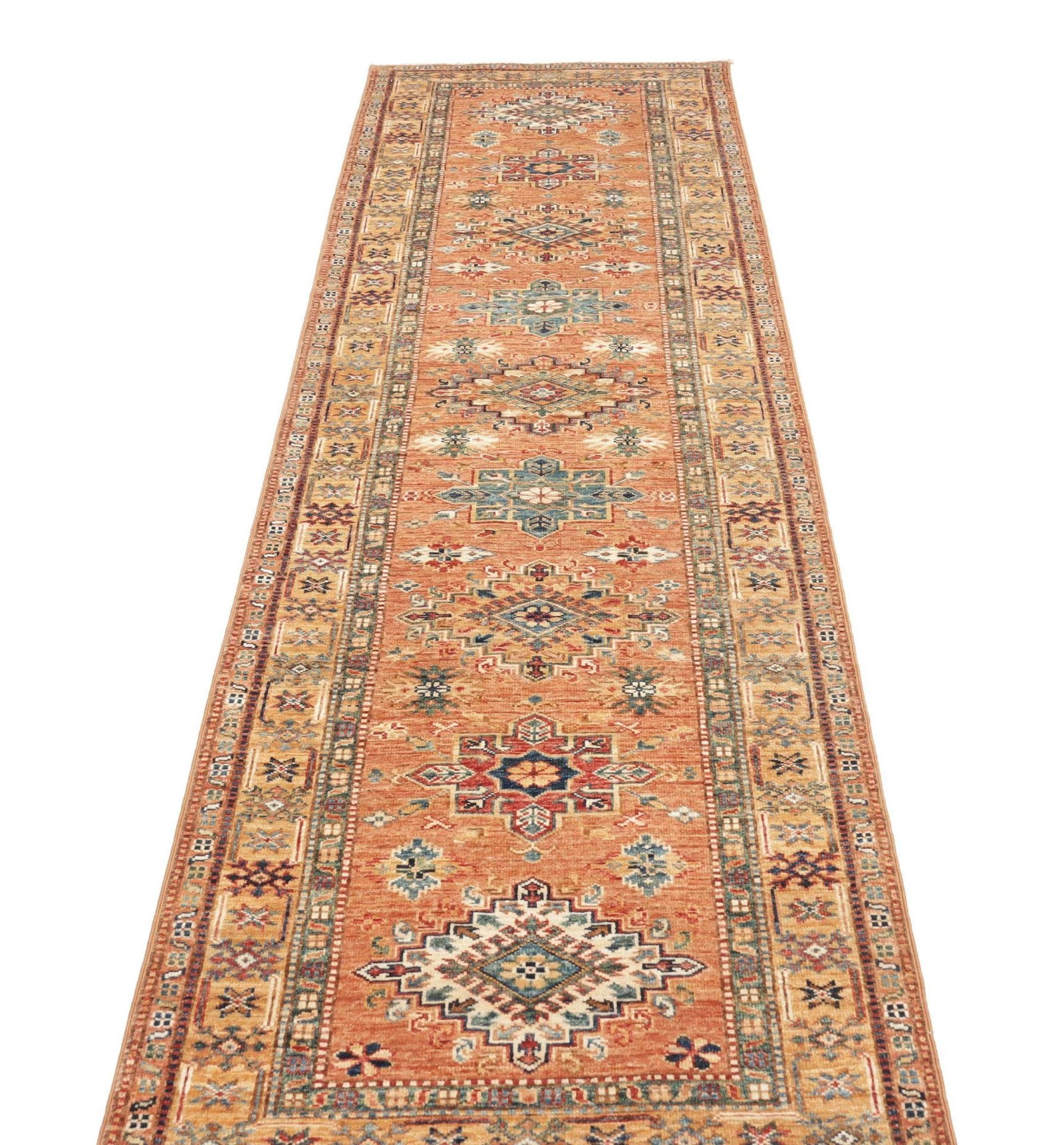 Kazak Teppich 87 x 300cm, geometrisches Muster, handgeknüpft