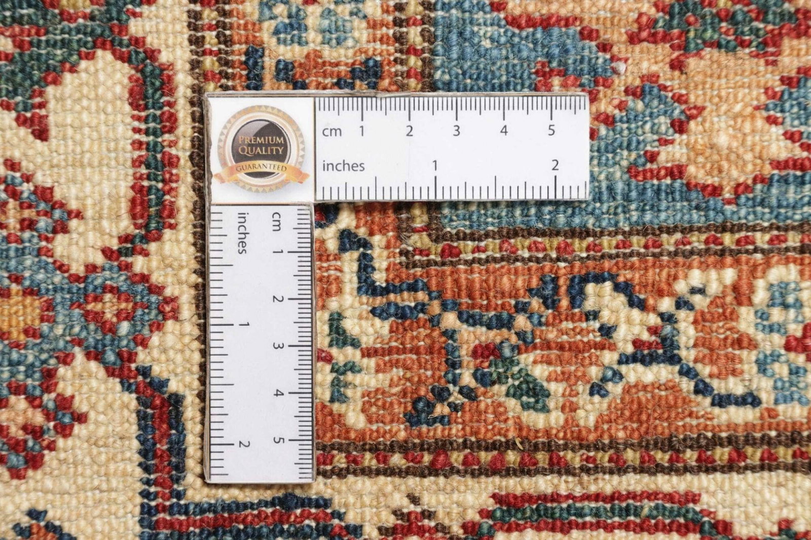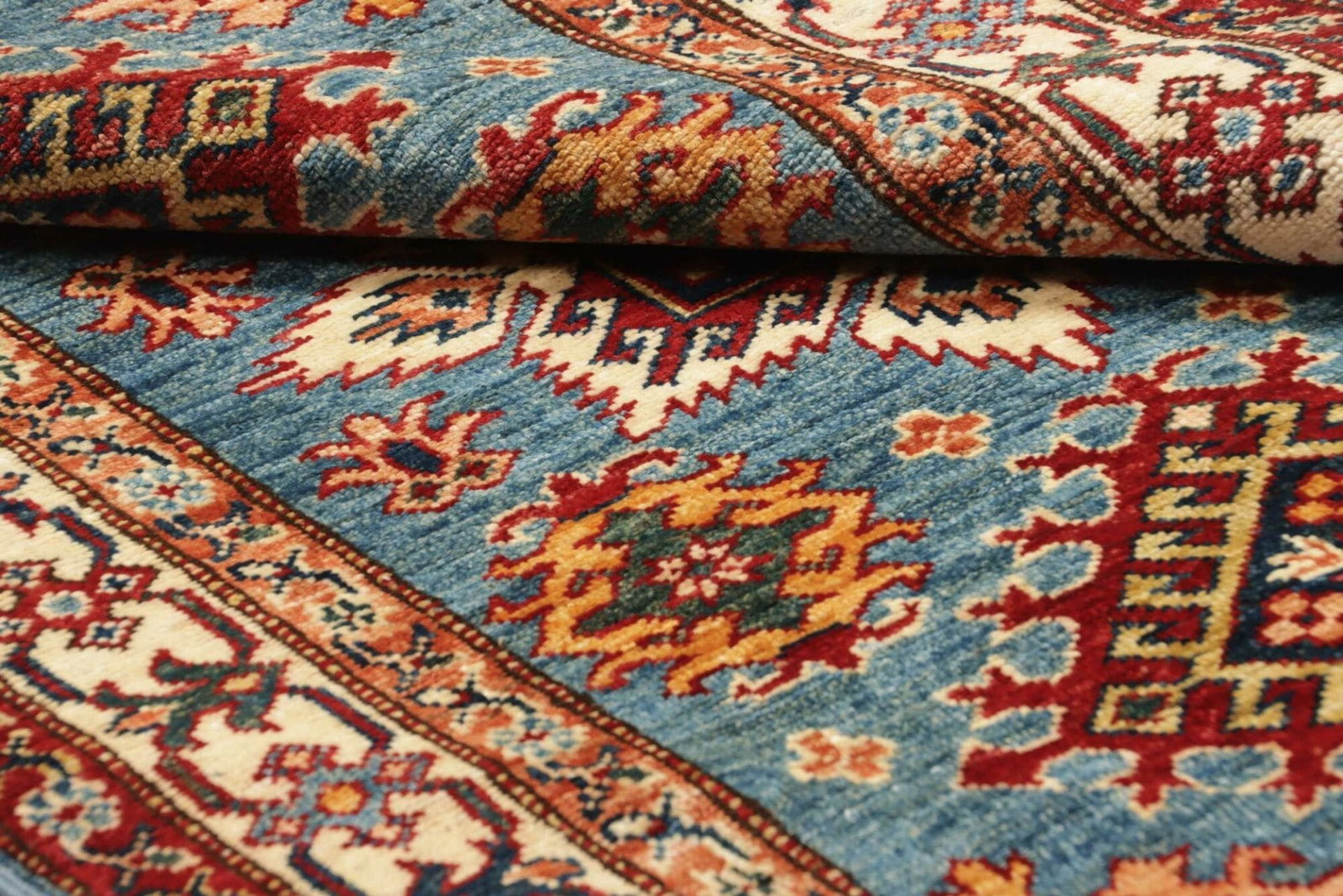 Ein herausragendes Merkmal des Kazak Teppichs ist nicht nur die hohe Qualität der Materialien, sondern auch die handgeknüpfte Verarbeitung, die für seine Langlebigkeit und Robustheit sorgt. Dies macht ihn bestens geeignet für stark frequentierte Räume, sei es im Wohn- oder Bürobereich. Zudem sind natürliche Materialien und die handwerkliche Fertigung umweltfreundlicher im Vergleich zu maschinell hergestellten Teppichen.