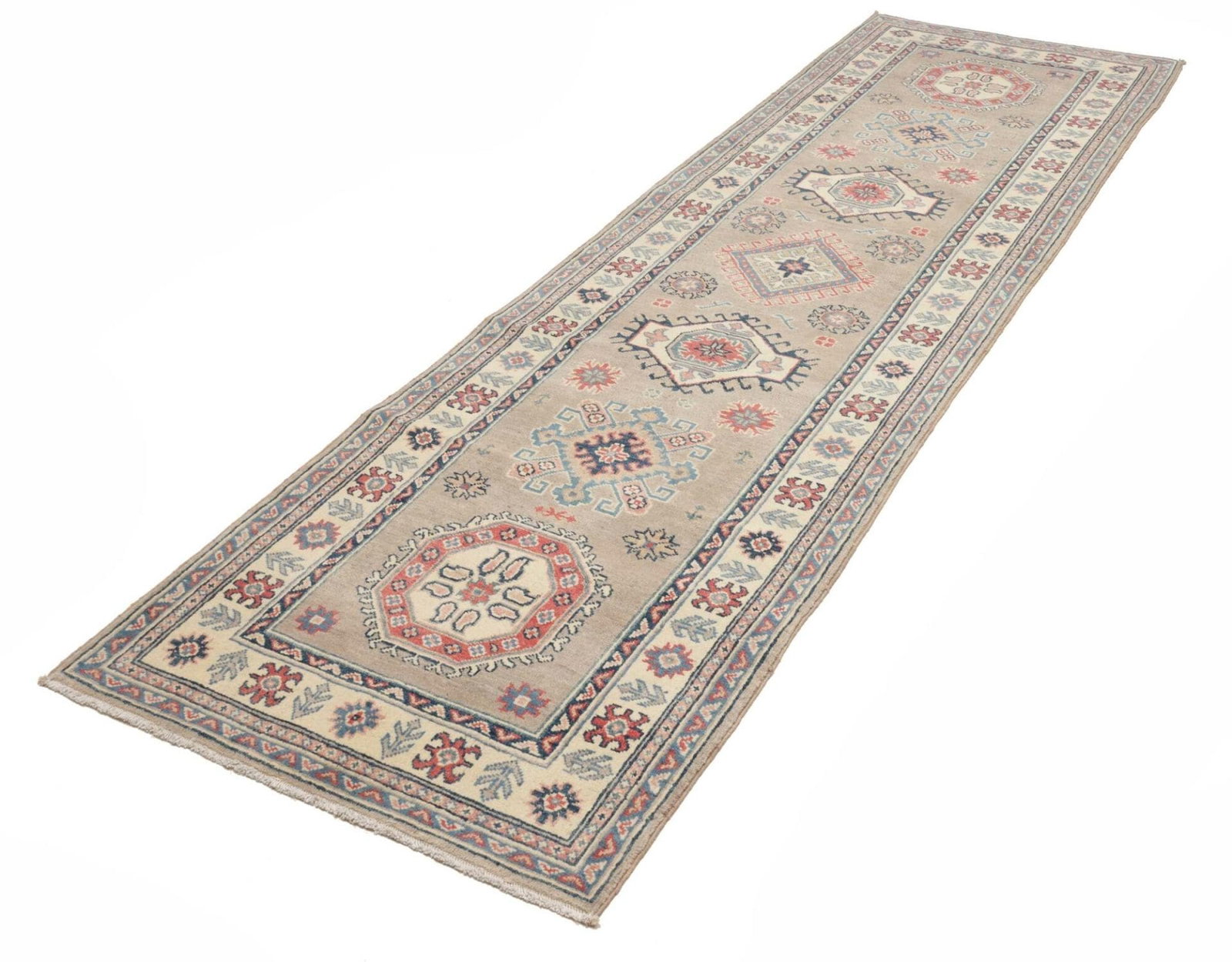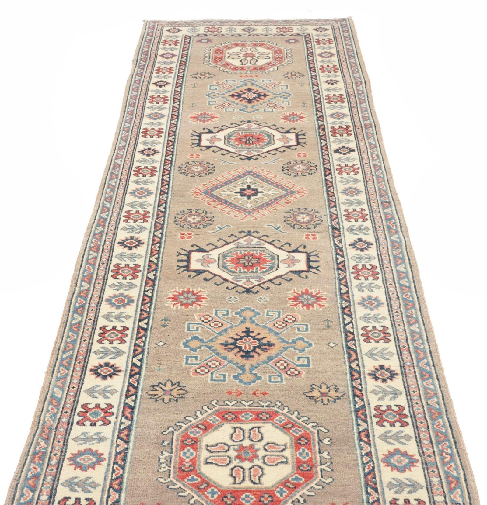 Kazak Teppich | Knotendichte: ca. 100.000 Knoten/m² | Material: 100% Schurwolle (Flor), 100% Baumwolle (Kette) | Größe: 88 x 291 cm | Verarbeitung: Handgeknüpft | Herkunft: Pakistan | Zustand: Exzellente Qualität