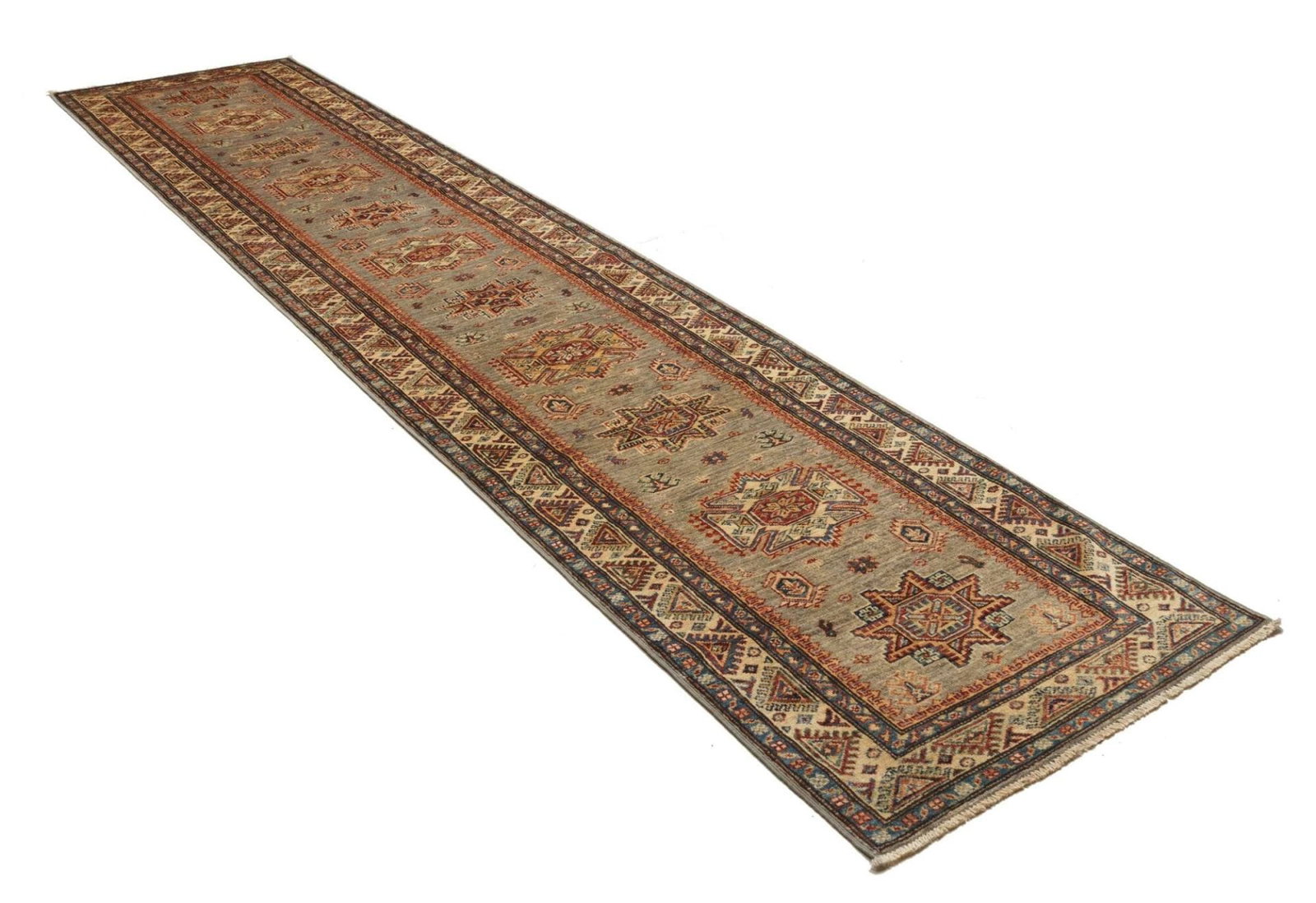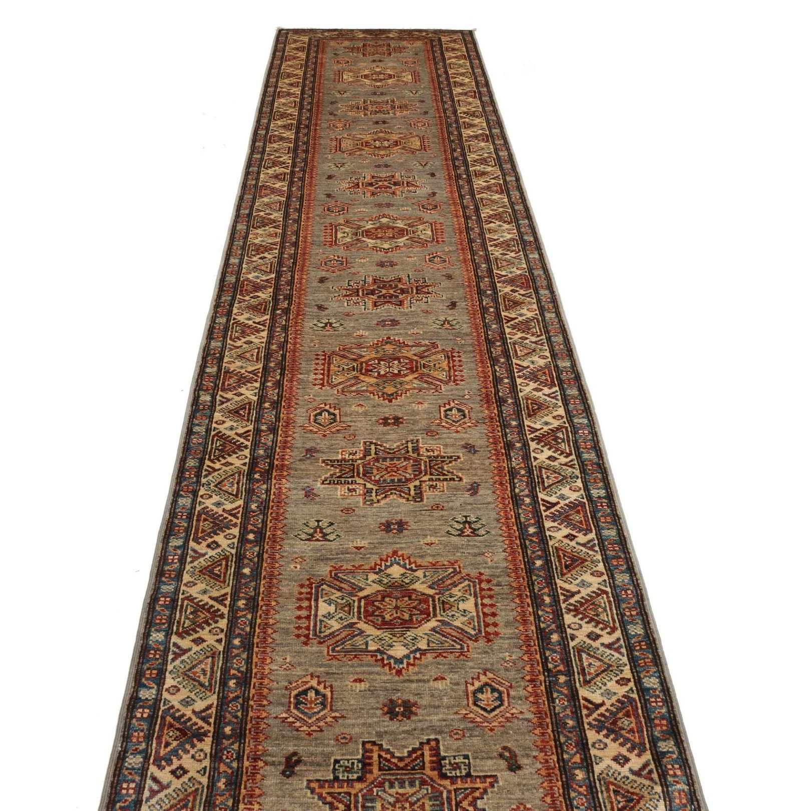 2207$Ursprünglicher Preis war: 2207$1960$Aktueller Preis ist: 1960$Kazak Teppich | Knotendichte: ca. 200.000 Knoten/m² | Material: 100% Schurwolle | Größe: 88 x 414 cm | Herkunft: Pakistan | Zustand: Handgeknüpft | Geometrische Muster und Figuren