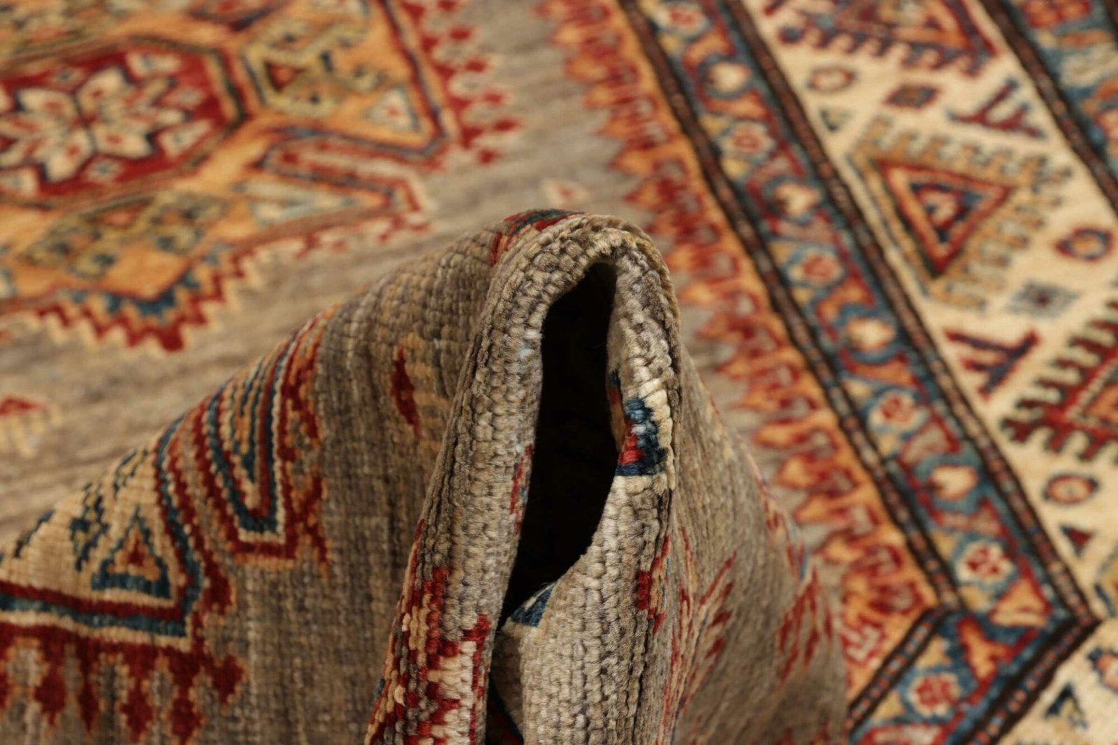 Der Kazak Teppich ist ein atemberaubendes Stück Handwerkskunst, das jedem Raum Wärme und Charakter verleiht. Dieser exklusiv handgeknüpfte Orientteppich beeindruckt durch sein auffälliges geometrisches Muster, das traditionell für seine harmonische Farbgestaltung und die modulare Anordnung bekannt ist. Mit einer exquisite Knotendichte bietet dieser Teppich nicht nur eine hervorragende Haltbarkeit, sondern ist auch ein Zeichen höchster Kunstfertigung, die von talentierten Knüpfern perfektioniert wurde.
