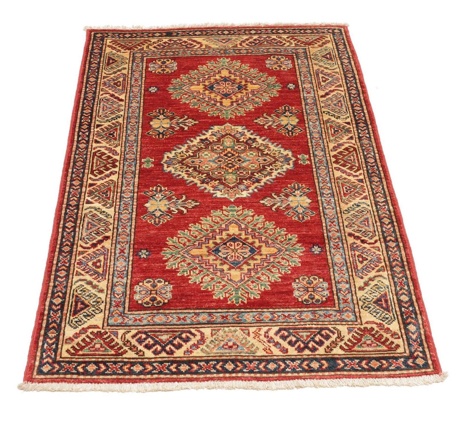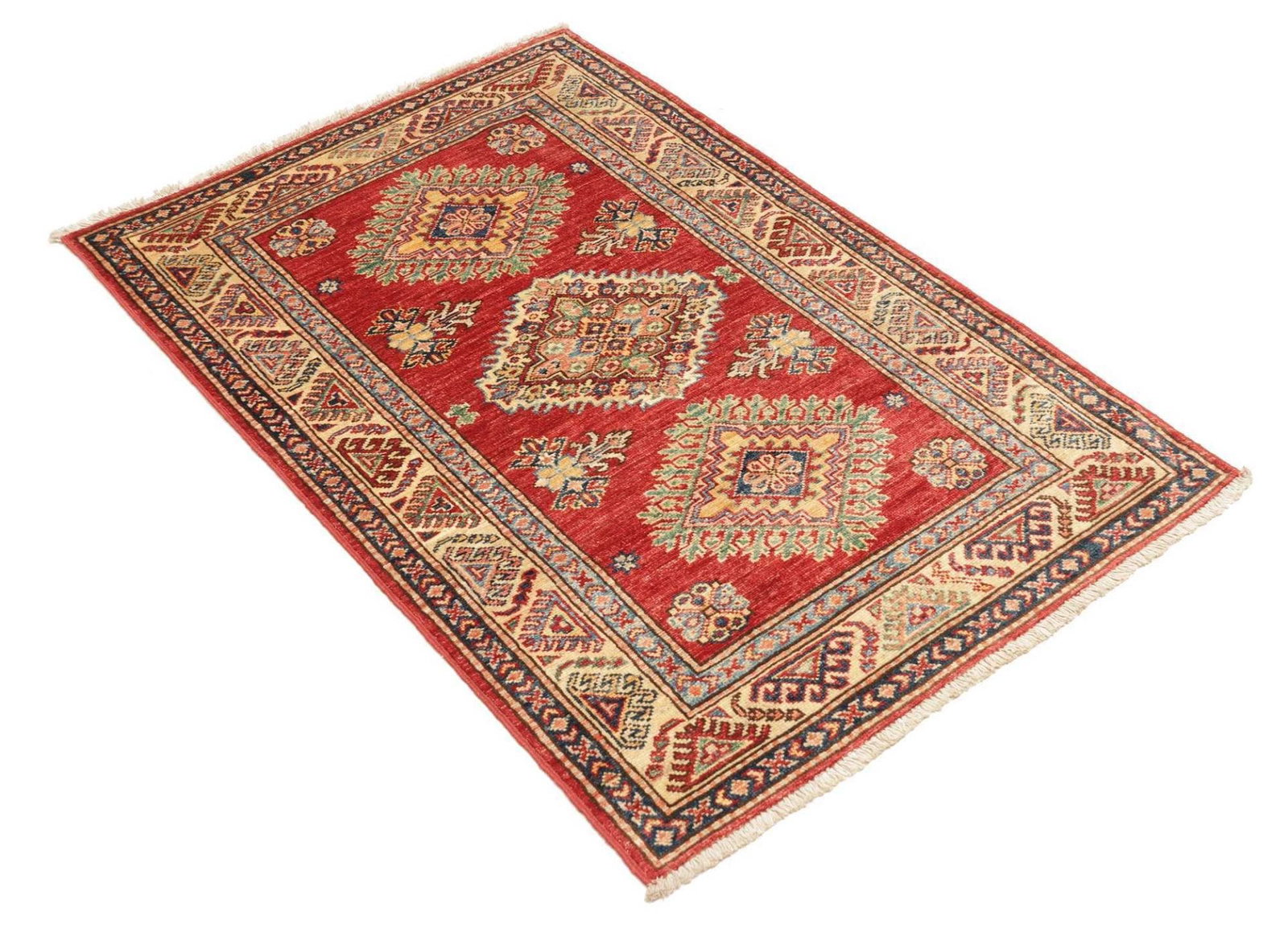 639$Ursprünglicher Preis war: 639$548$Aktueller Preis ist: 548$Kazak Teppich | Herkunft: Pakistan | Knotendichte: ca. 200.000 Knoten/m² | Größe: 89 x 116 cm | Flor: 100% Schurwolle | Kette: 100% Baumwolle | Verarbeitung: Handgeknüpft | Zustand: Sehr gut